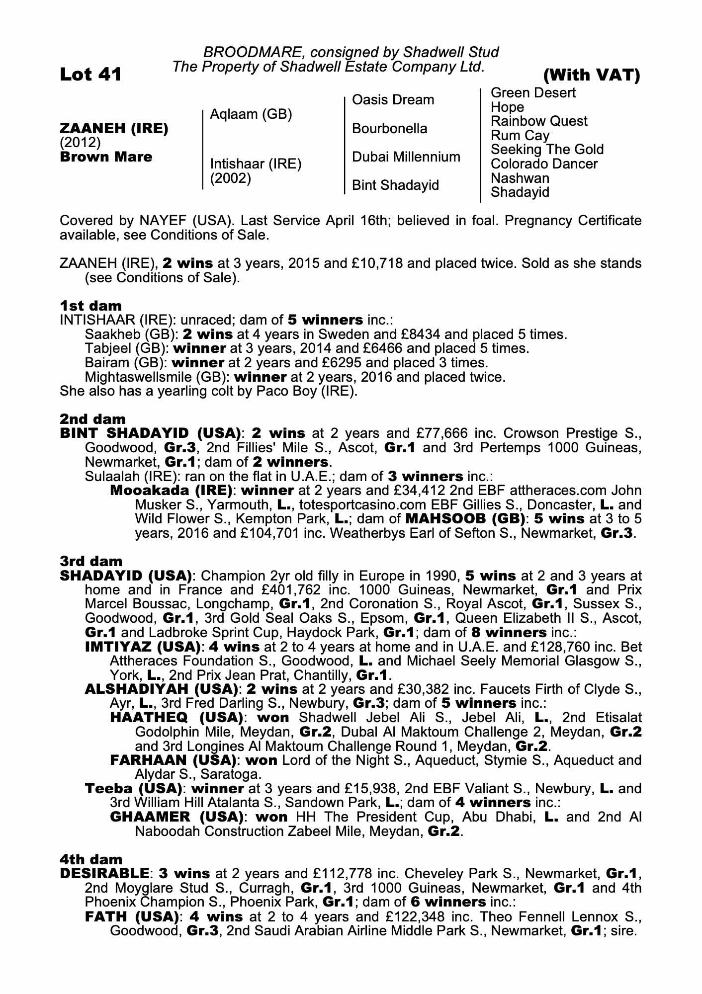 Consignor: Shadwell Stud
