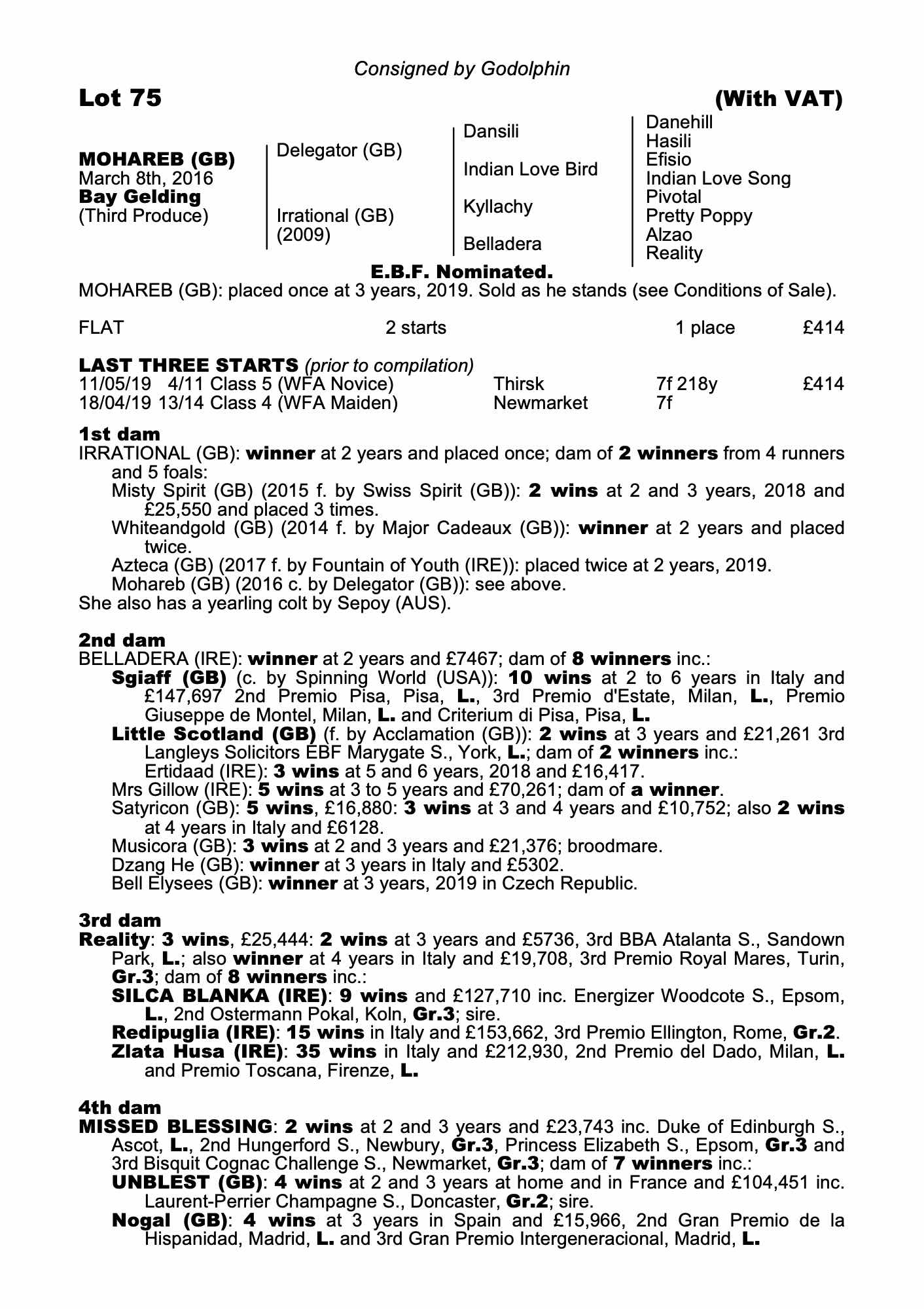 Ascot Yearling Sale 2019 lot 75 C. by Sepoy (AUS) 2018, Bearstone Stud=>John Jenkins Racing £10,500