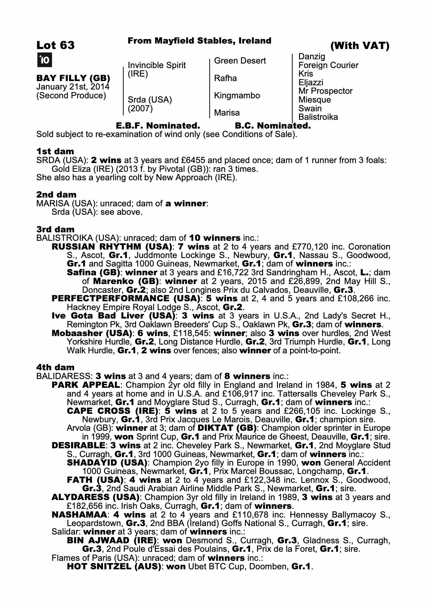 October Yearling Sale, Book 1 2014 lot 67 F. by Pivotal (GB) 2013, Highclere Stud=>BBA Ireland 50,000 gns