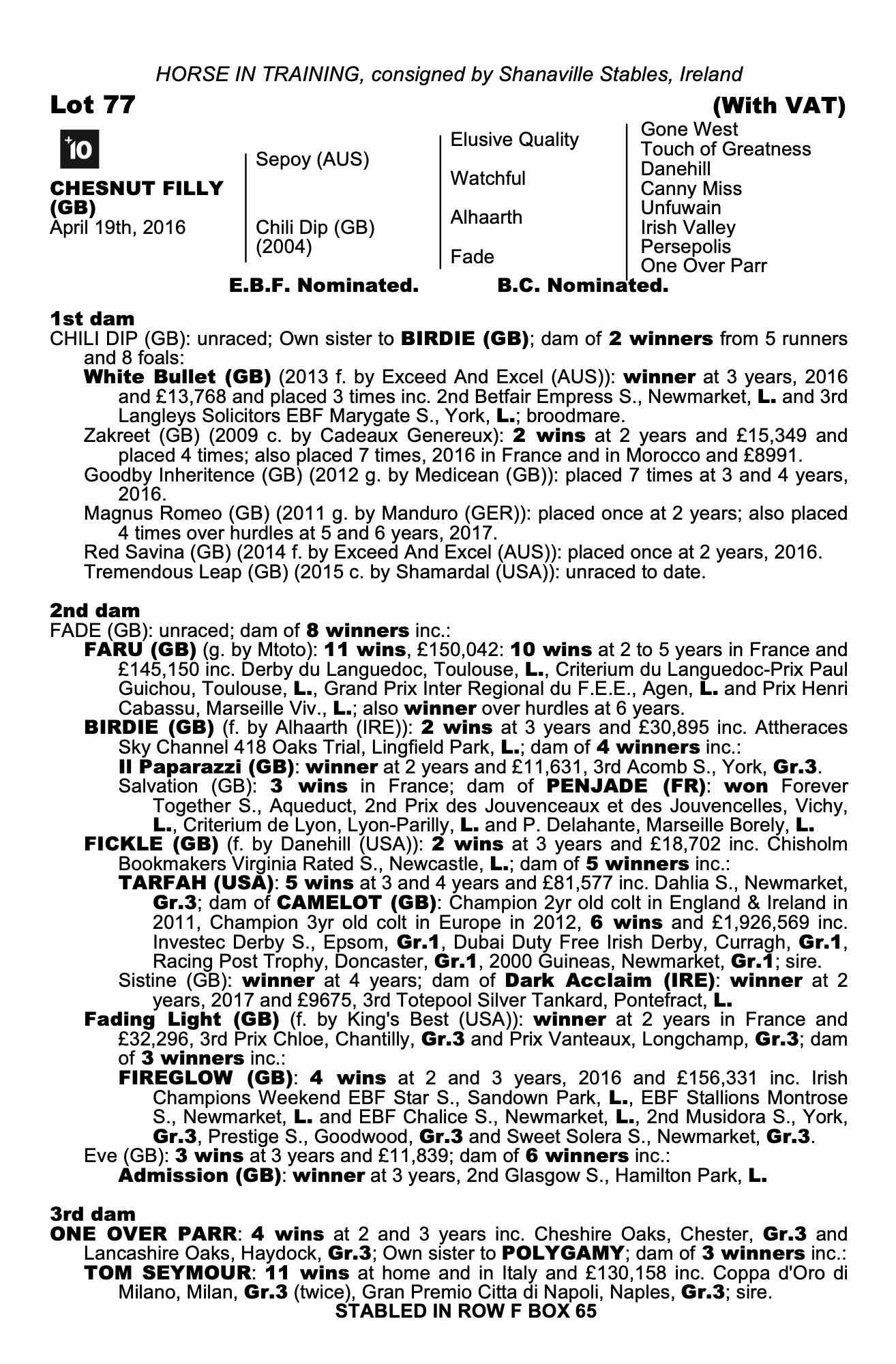 Online Sale - 4th July 2024 lot 96 White Bullet (GB) (M. by Exceed And Excel (AUS)), Baroda Stud, Ireland=>Lot Not Sold 19,500 gns