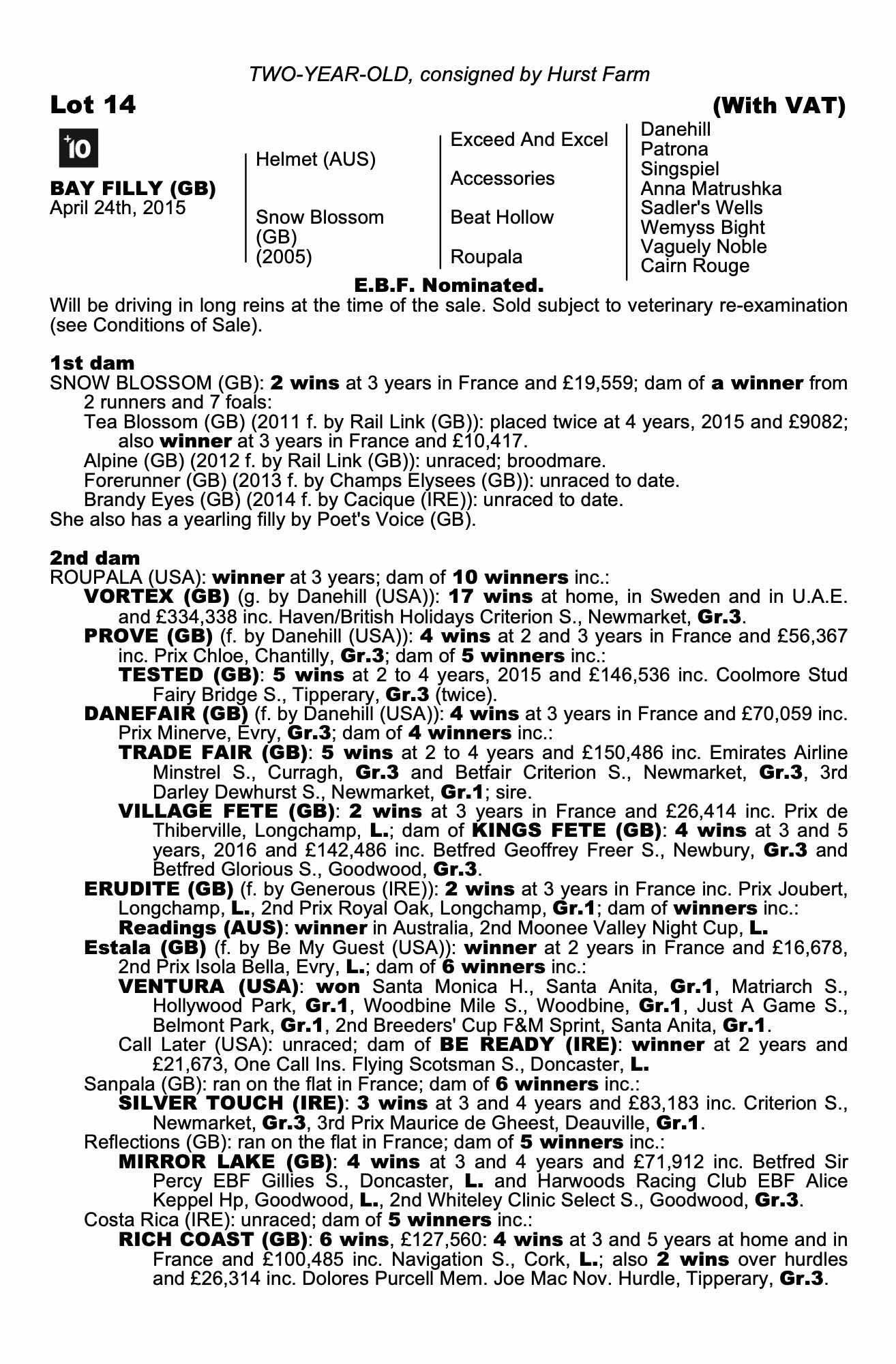 July Sale 2015 lot 643 Forerunner (GB) (F. by Champs Elysees (GB)), Juddmonte Farms=>S Wilson 5,500 gns