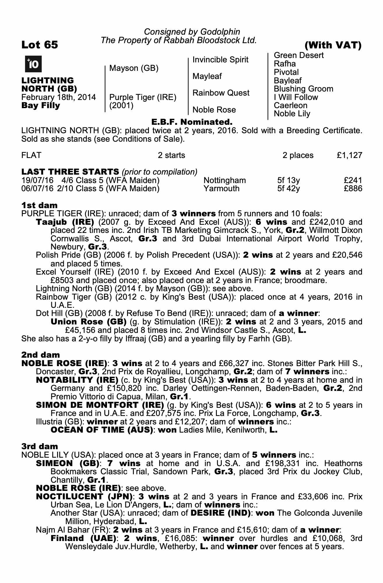 July Sale 2012 lot 364 Purple Tigress (GB) (F. by Dubai Destination (USA)), James Tate Racing Ltd.=>Lot Not Sold