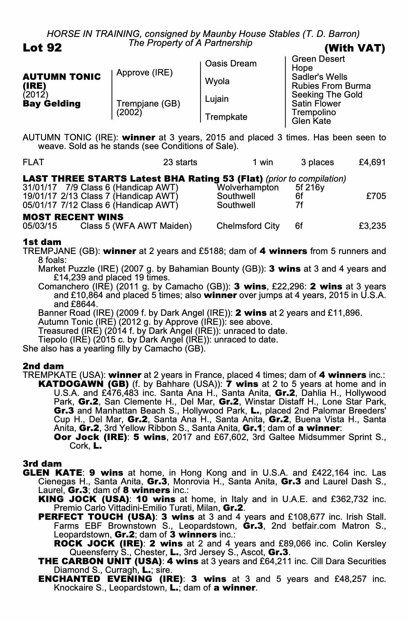 Consignor: Maunby House Stables (T. D. Barron)