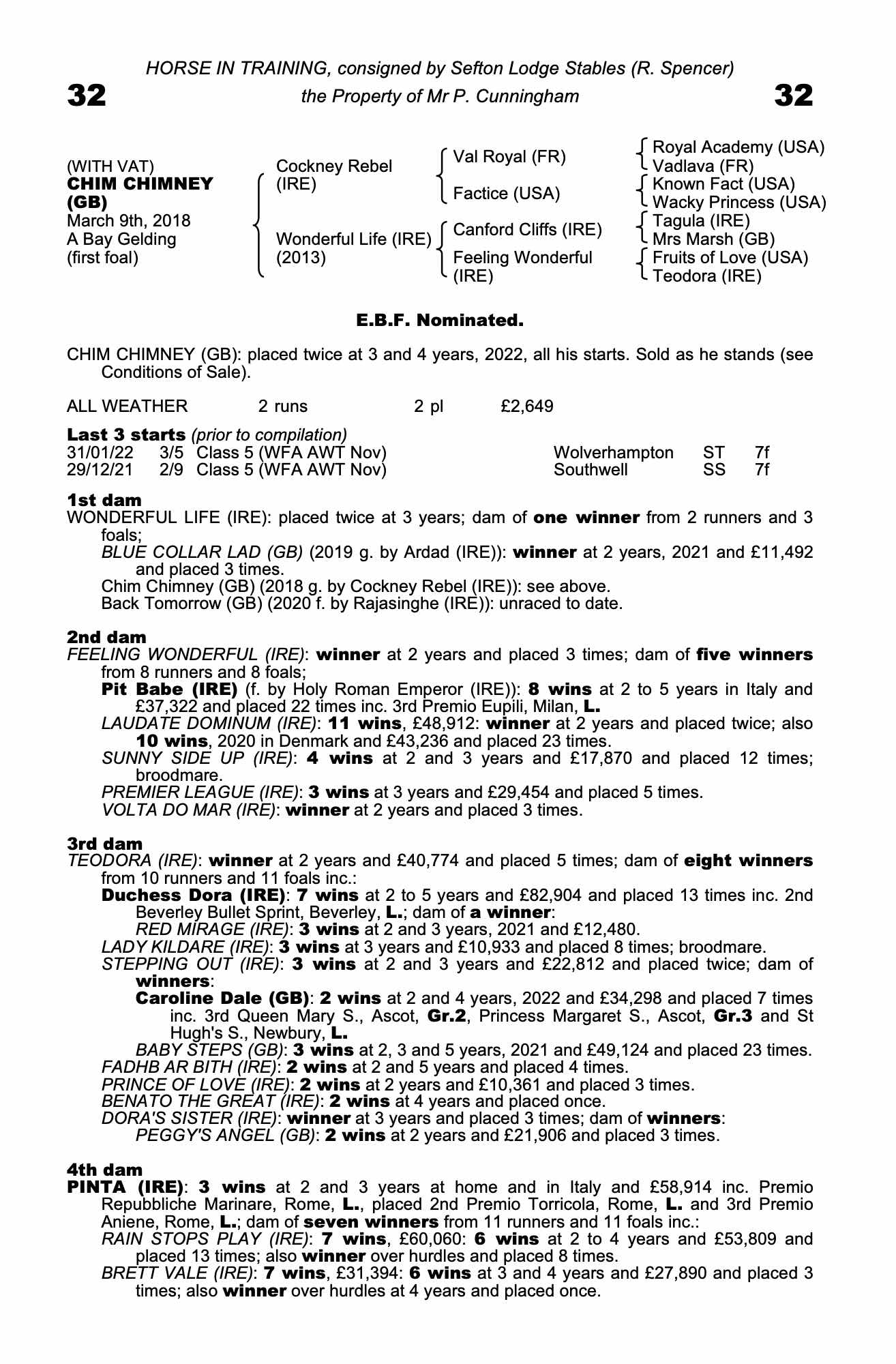 Consignor: Sefton Lodge Stables (R. Spencer)