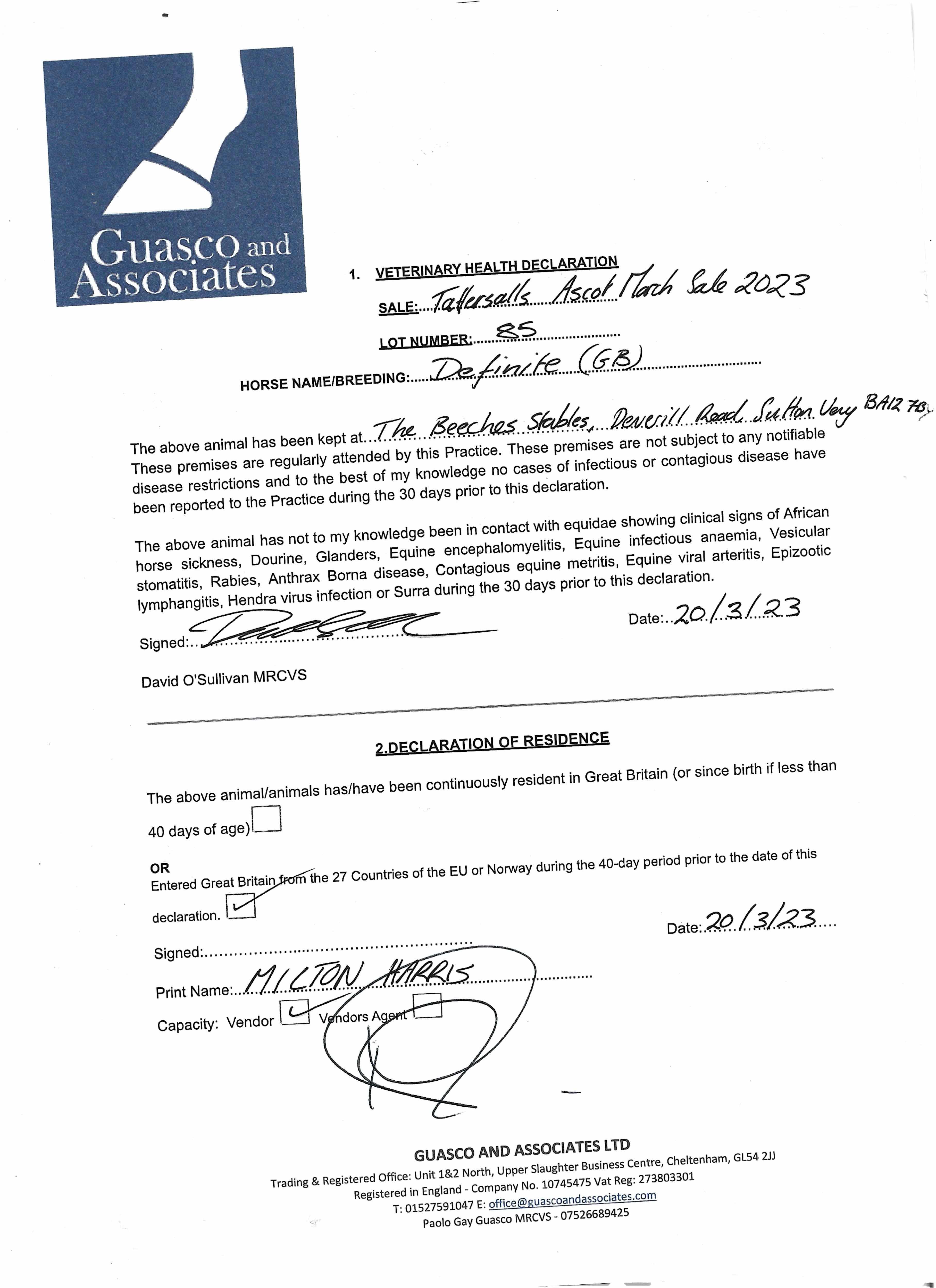 Consignor: The Beeches Stables (M. Harris)