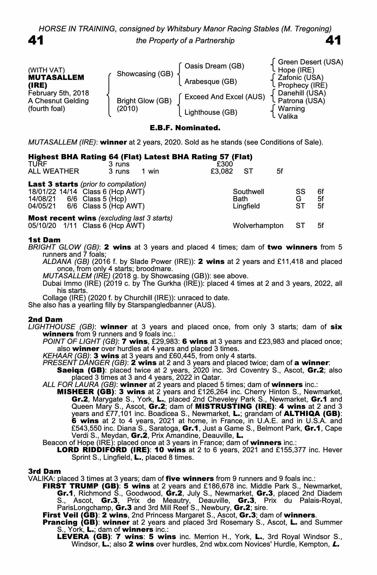 Consignor: Whitsbury Manor Racing Stables (M. Tregoning)