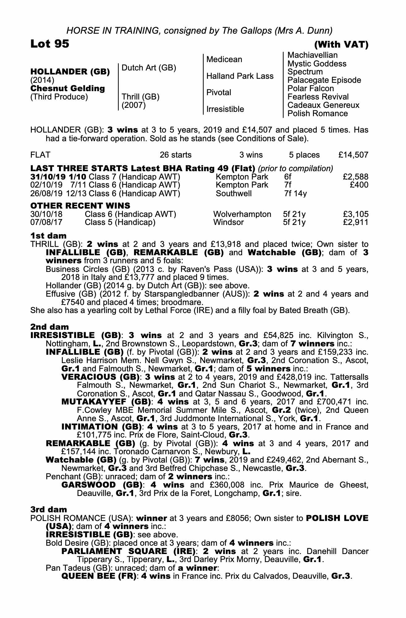 Consignor: The Gallops (Mrs A. Dunn)