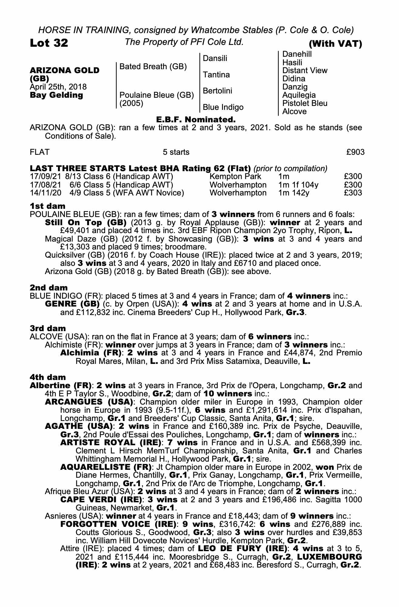 Consignor: Whatcombe Stables (P. Cole & O. Cole)