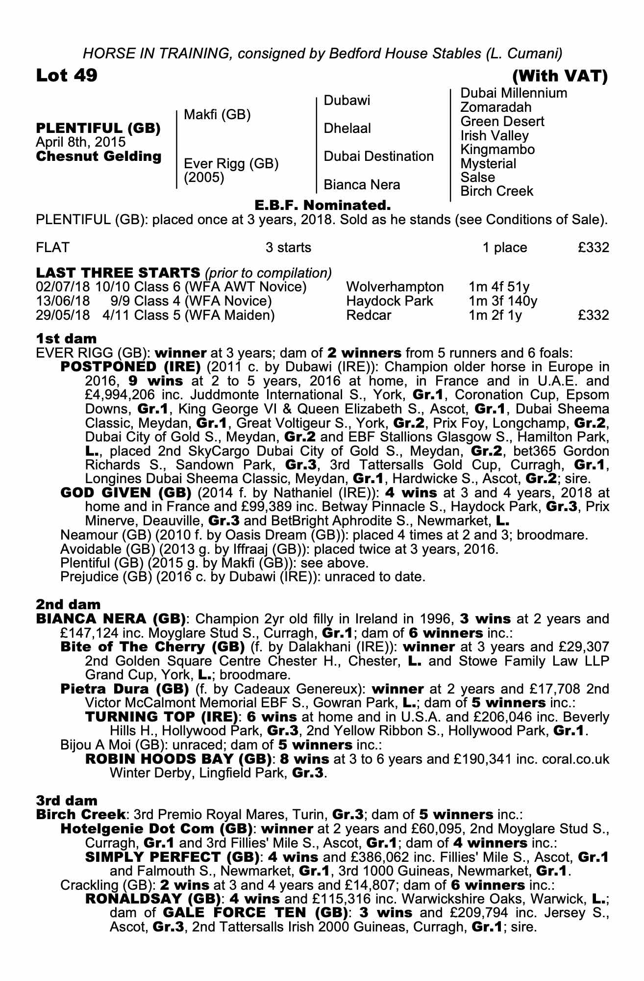 Consignor: Bedford House Stables (L. Cumani)