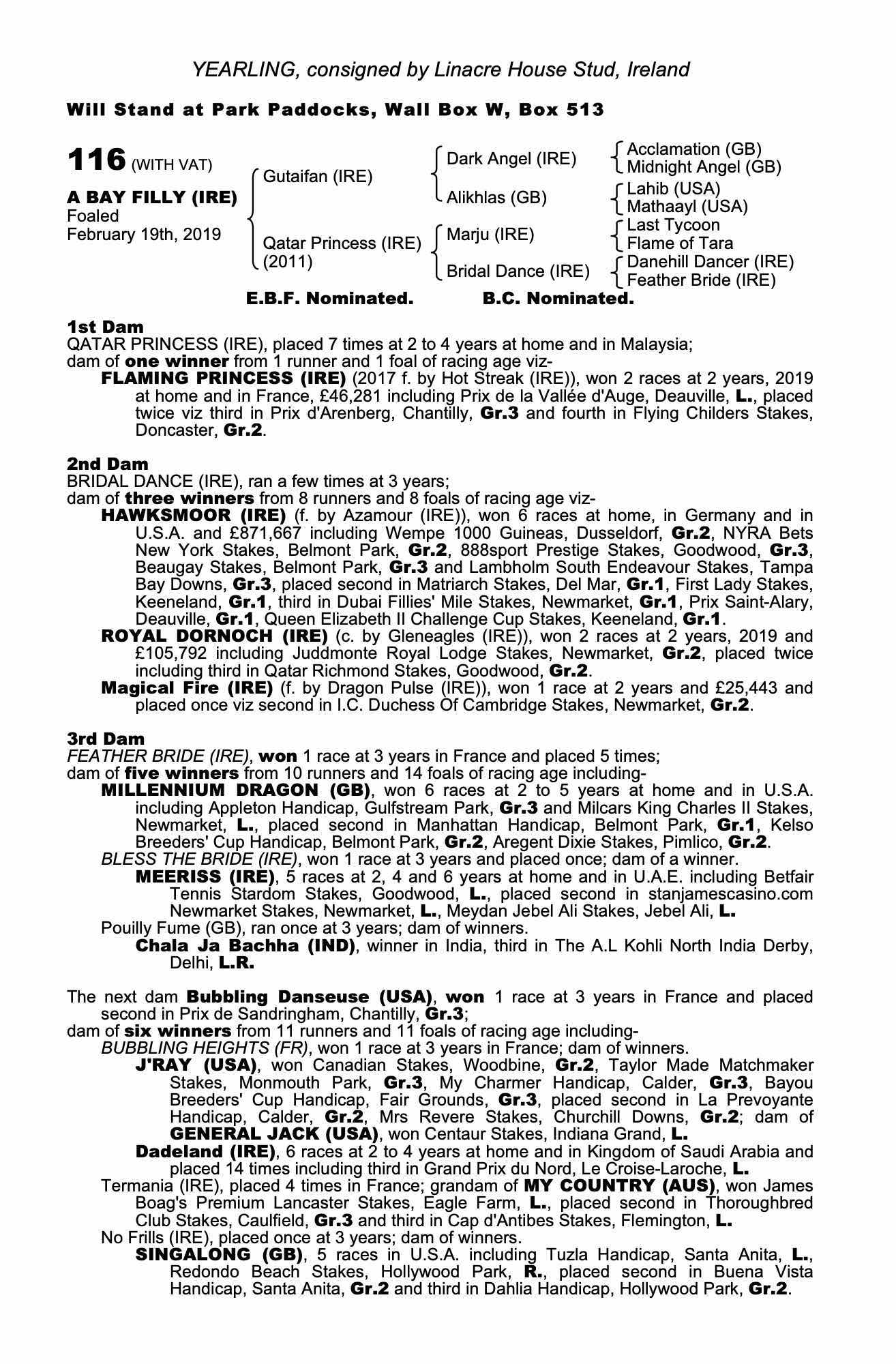 October Yearling Sale, Book 2 2022 lot 786 F. by Churchill (IRE) 2021, Glenvale Stud, Ireland=>Vendor 120,000 gns