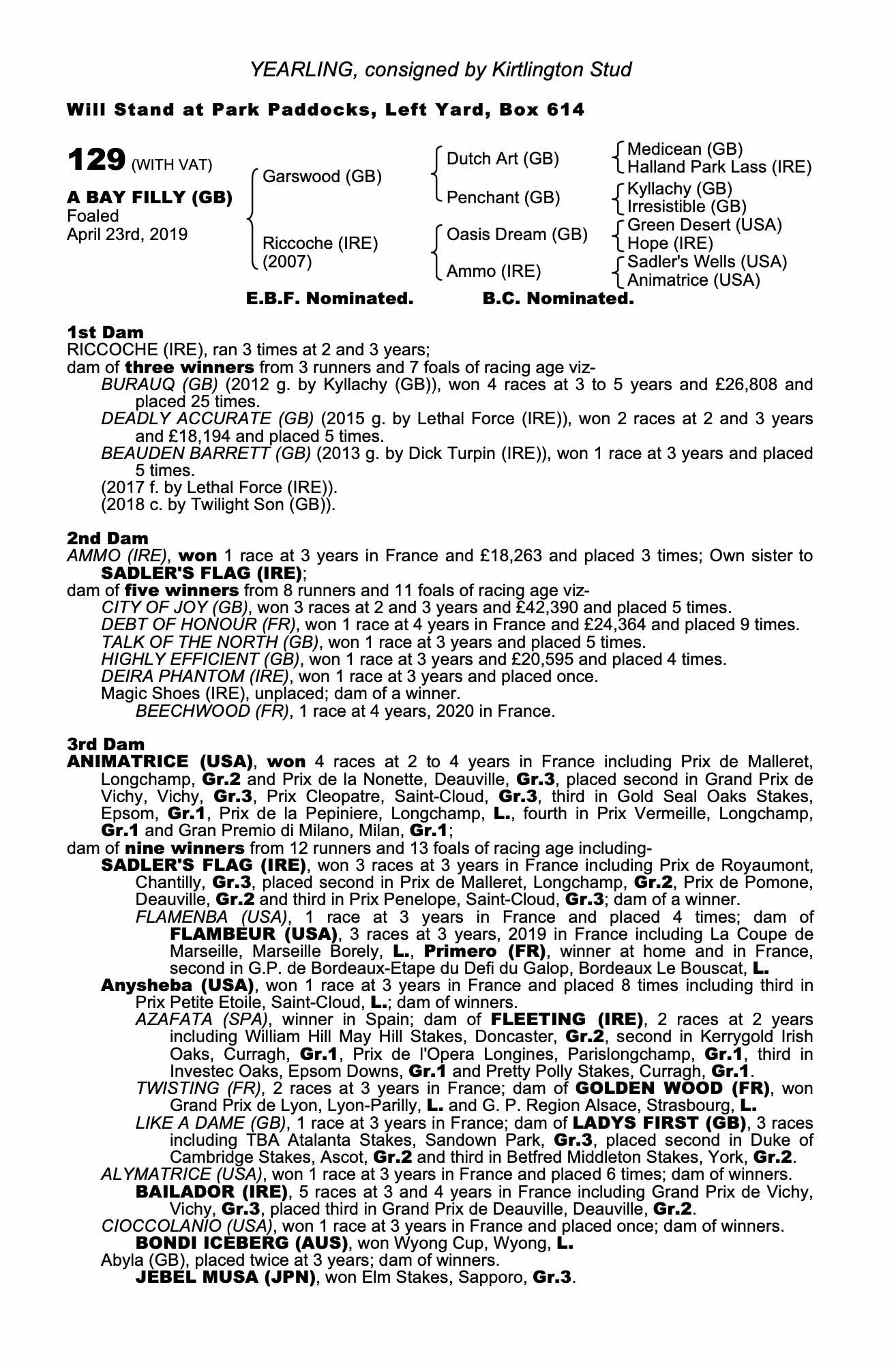 December Yearling Sale 2015 lot 87 F. by Harbour Watch (IRE) 2014, Kirtlington Stud=>Vendor 7,500 gns