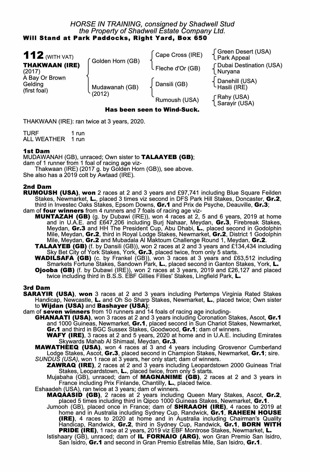 Autumn Horses In Training Sale 2021 lot 35 Maktoob (GB) (C. by Awtaad (IRE)), Shadwell Estate Company Ltd.=>Colm Sharkey Agent 50,000 gns