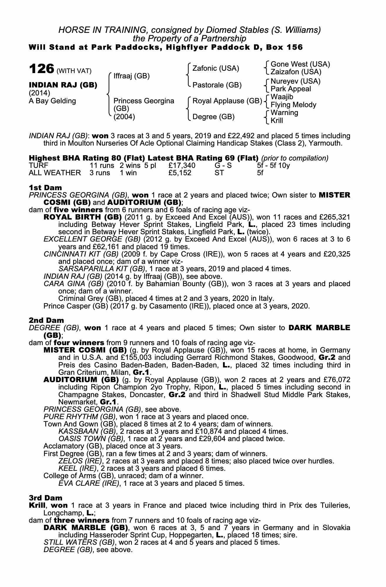 Autumn Horses In Training Sale 2020 lot 1491 Prince Casper (GB) (G. by Casamento (IRE)), Diomed Stables (S. Williams)=>G B Pacey 1,000 gns