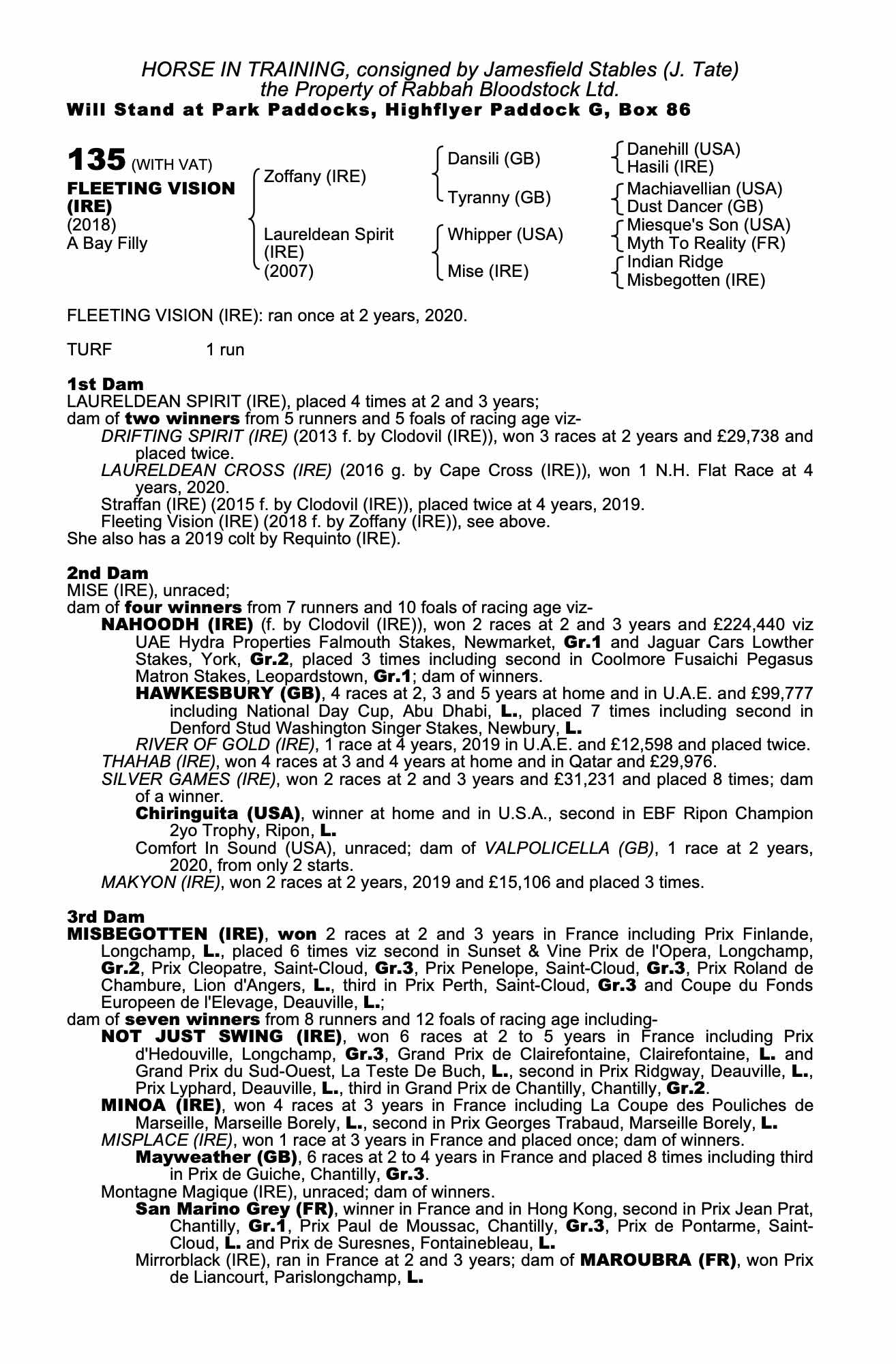 Consignor: Jamesfield Stables (J. Tate)