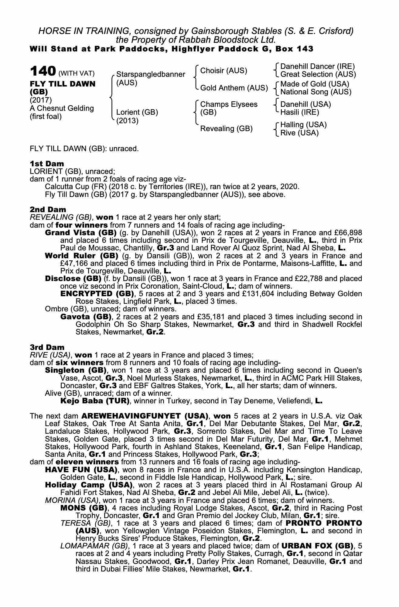 Consignor: Gainsborough Stables (S. & E. Crisford)