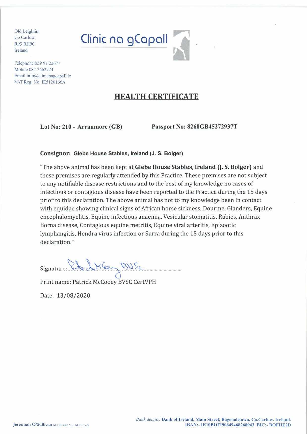 Consignor: Glebe House Stables, Ireland (J. S. Bolger)