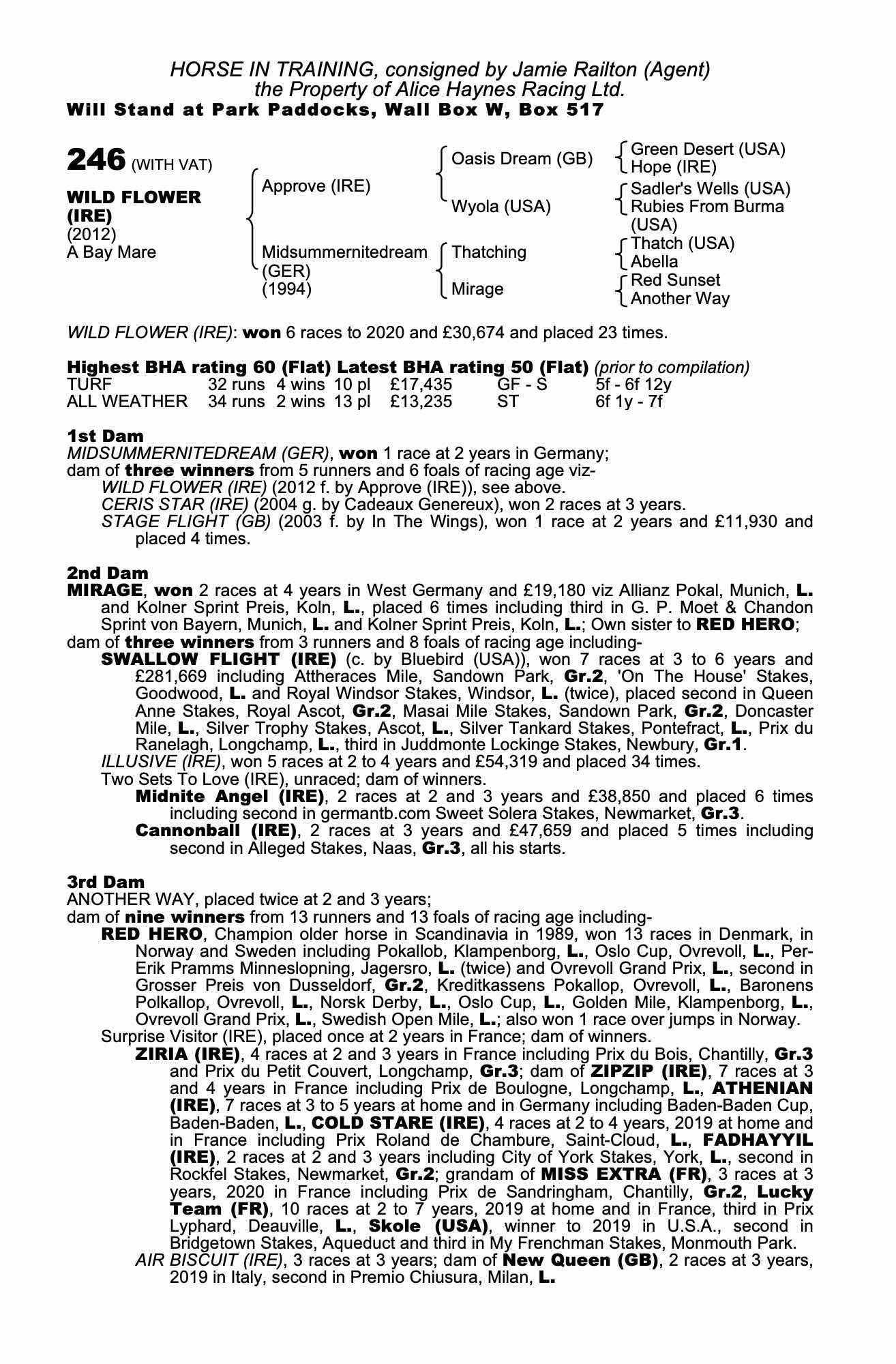 September Yearling Sale 2012 lot 104 F. by Oratorio (IRE) 2011, Carrabawn Stud=>Colin Magnier €3,000
