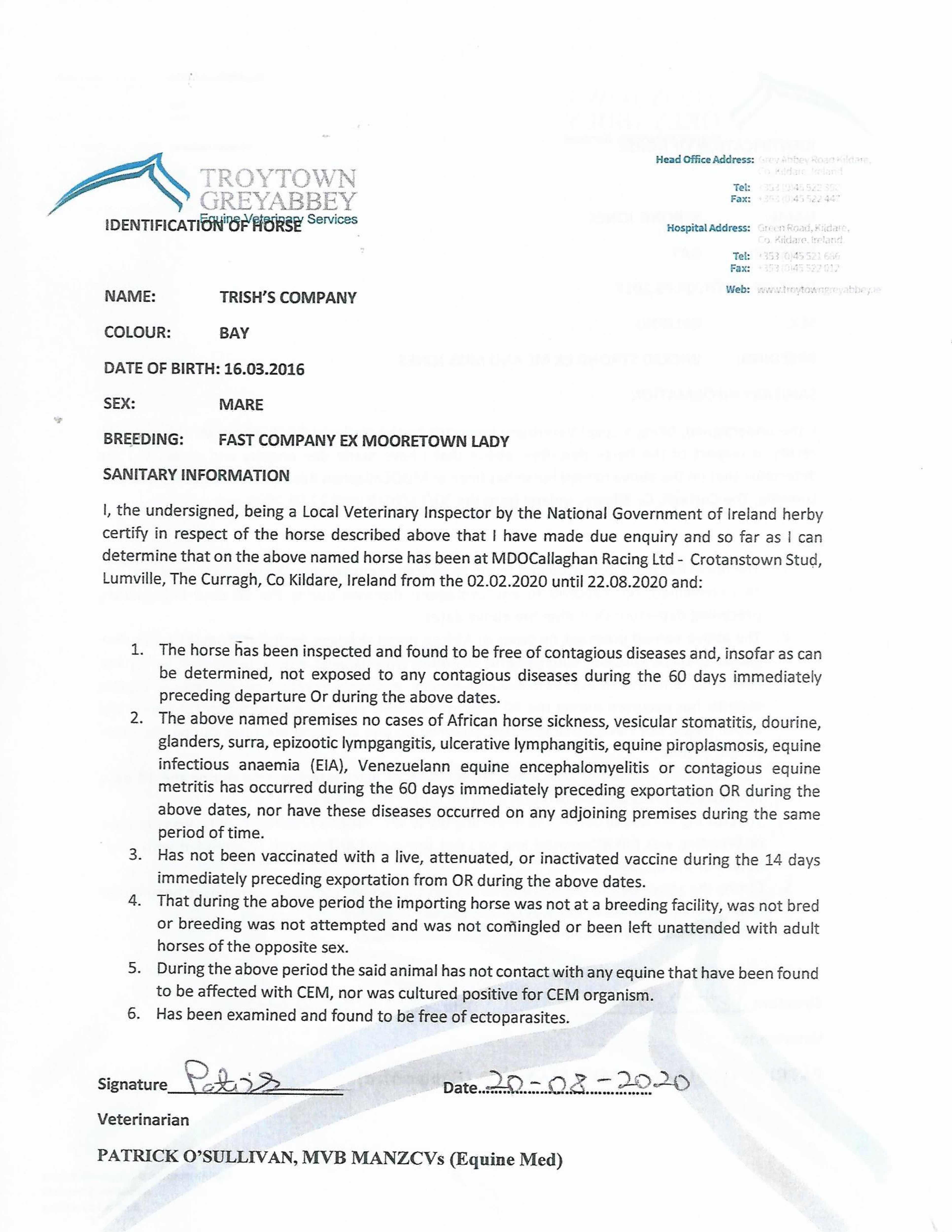 Consignor: M. D. O' Callaghan Racing, Ireland