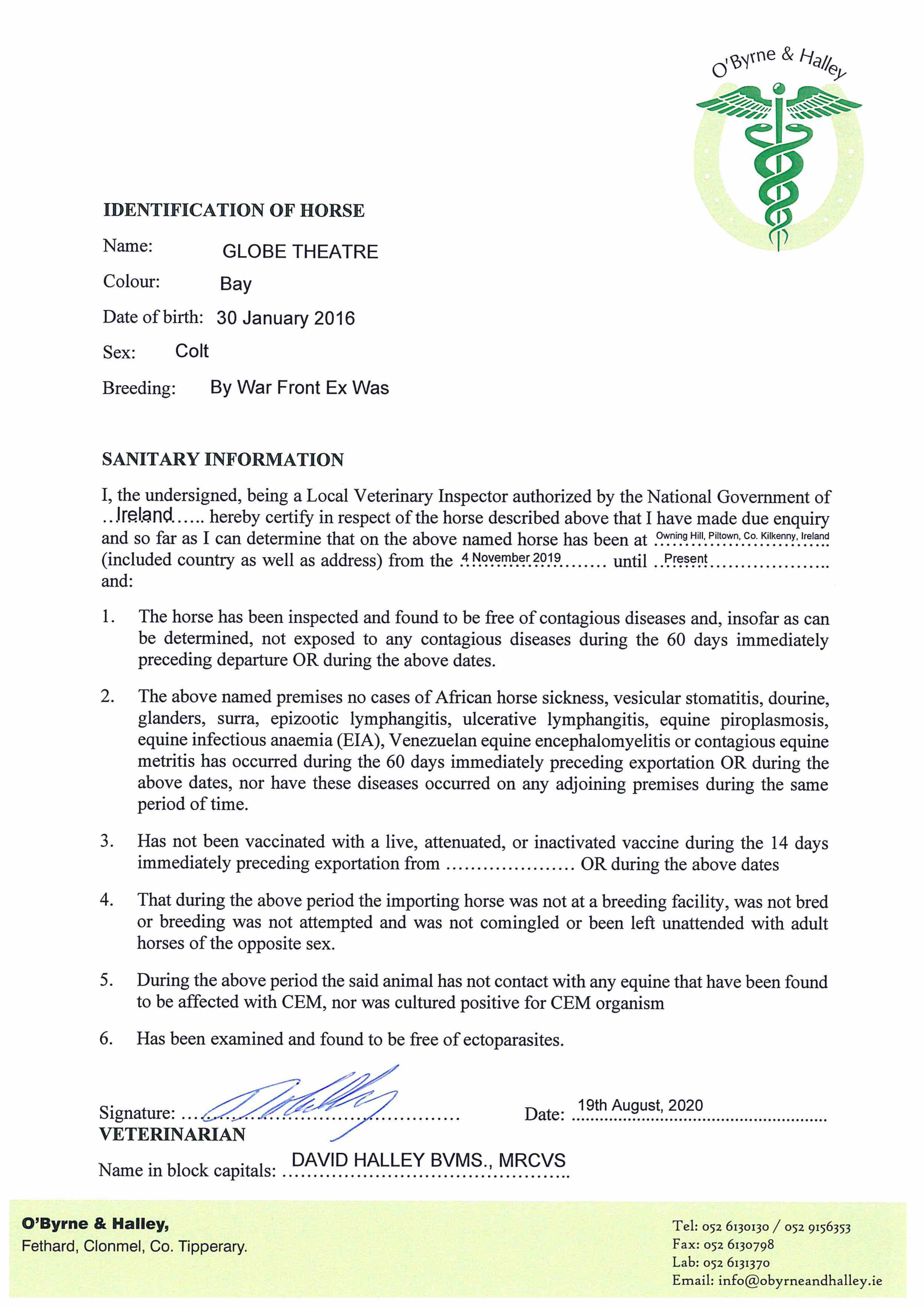 Health Certificate