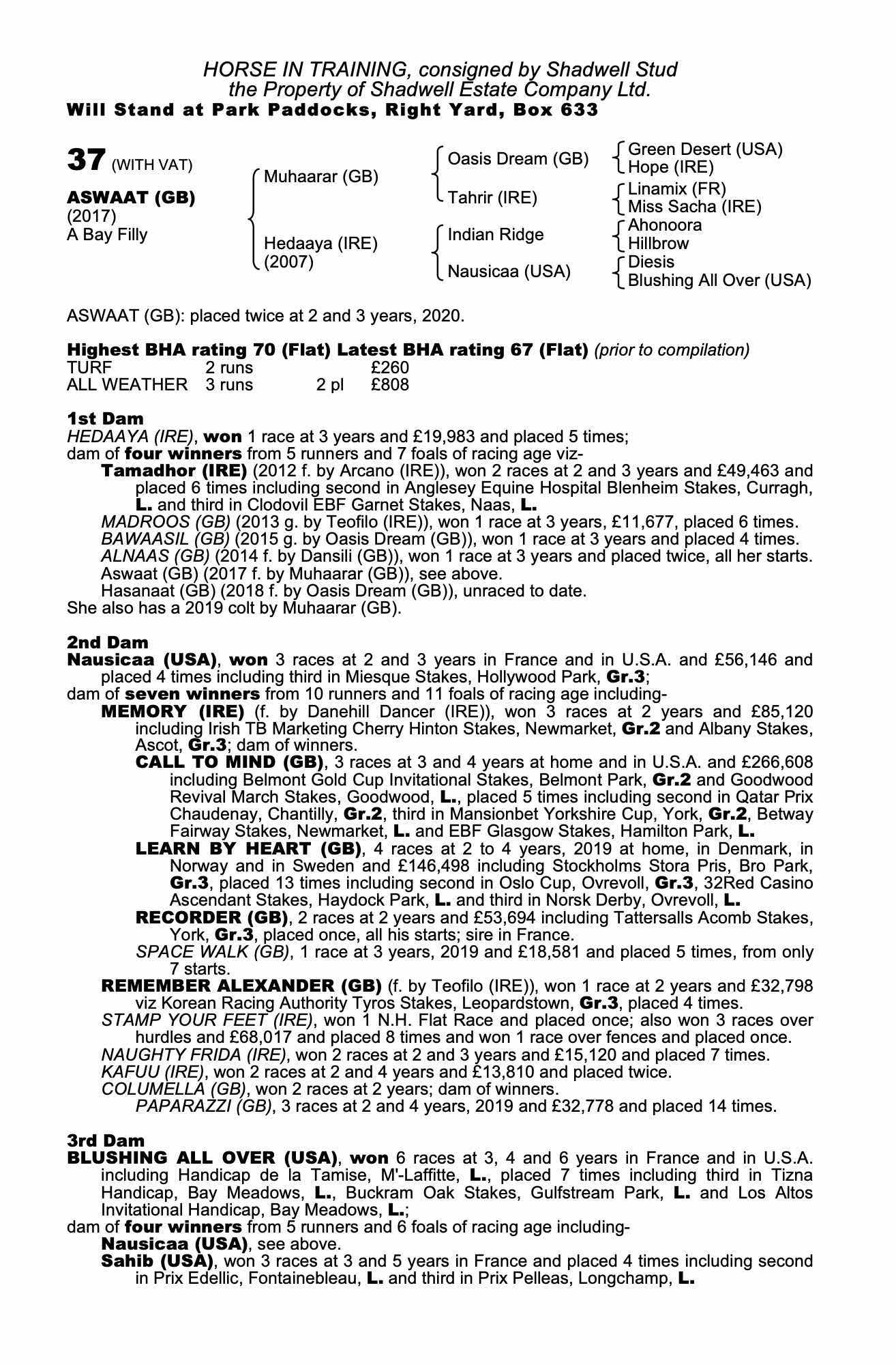 July Sale 2021 lot 274 Hasanaat (GB) (F. by Oasis Dream (GB)), Shadwell Estate Company Ltd.=>Barry Lynch / Jack Davison Racing 18,000 gns