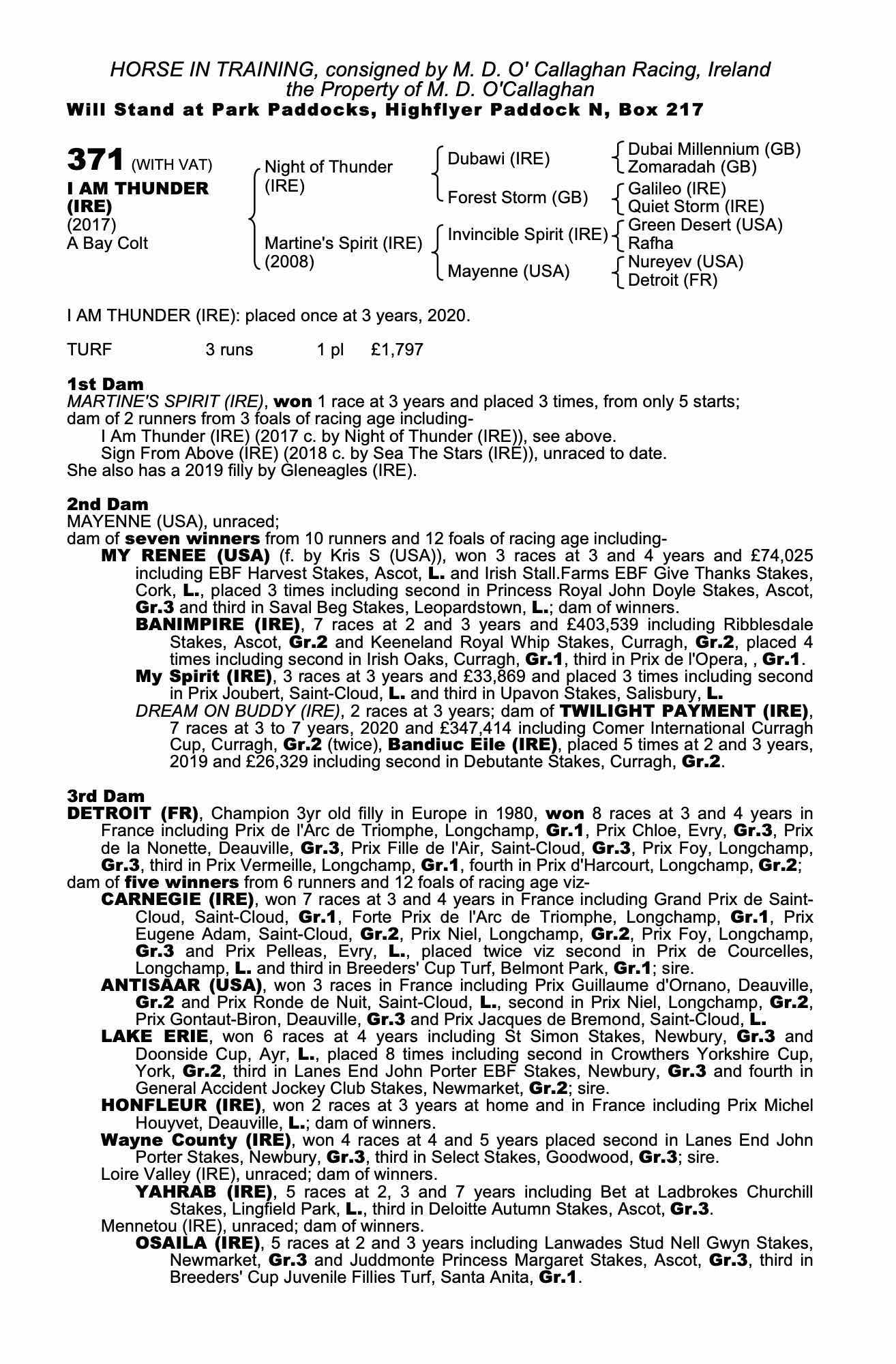 Consignor: M. D. O' Callaghan Racing, Ireland