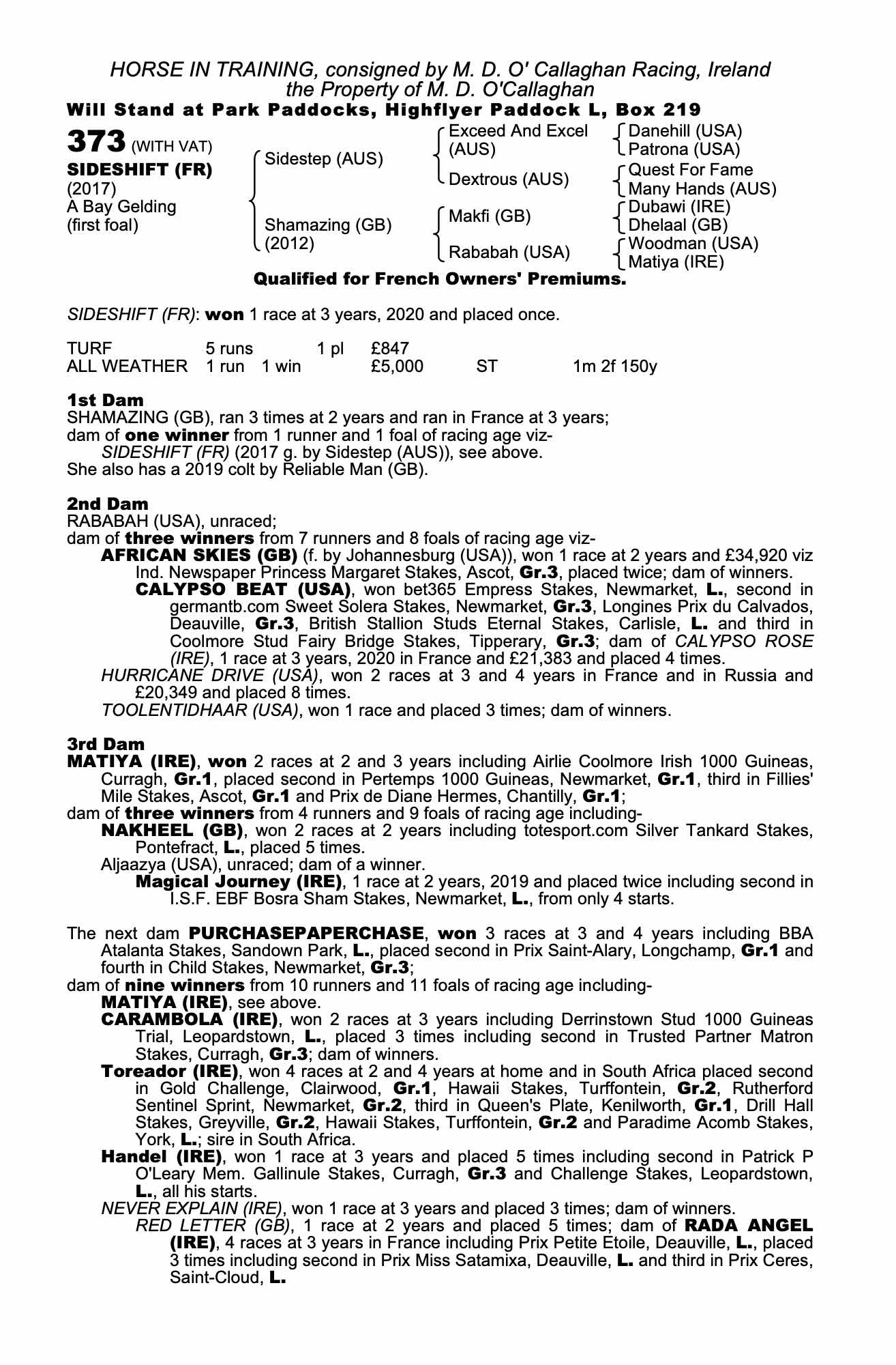 Consignor: M. D. O' Callaghan Racing, Ireland