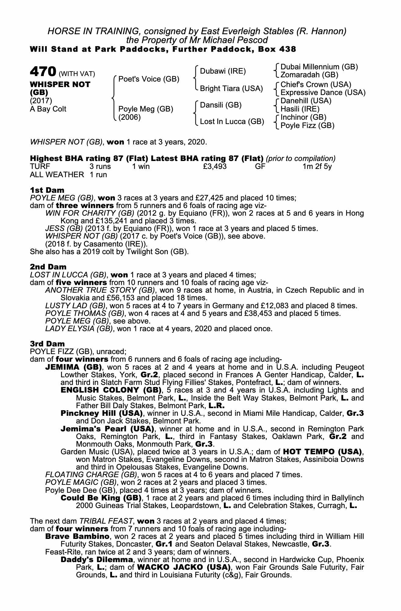 Consignor: East Everleigh Stables (R. Hannon)