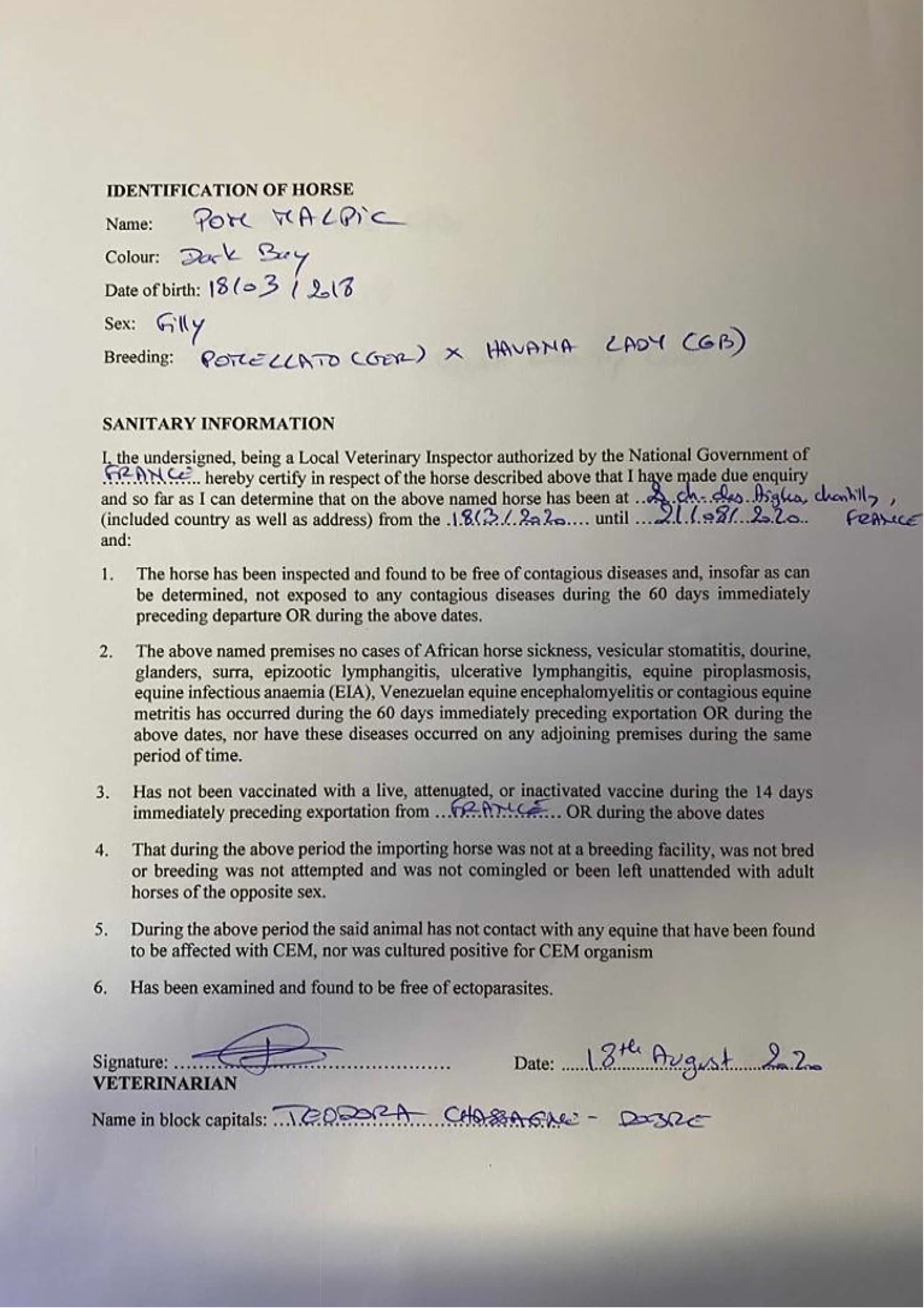 Health Certificate