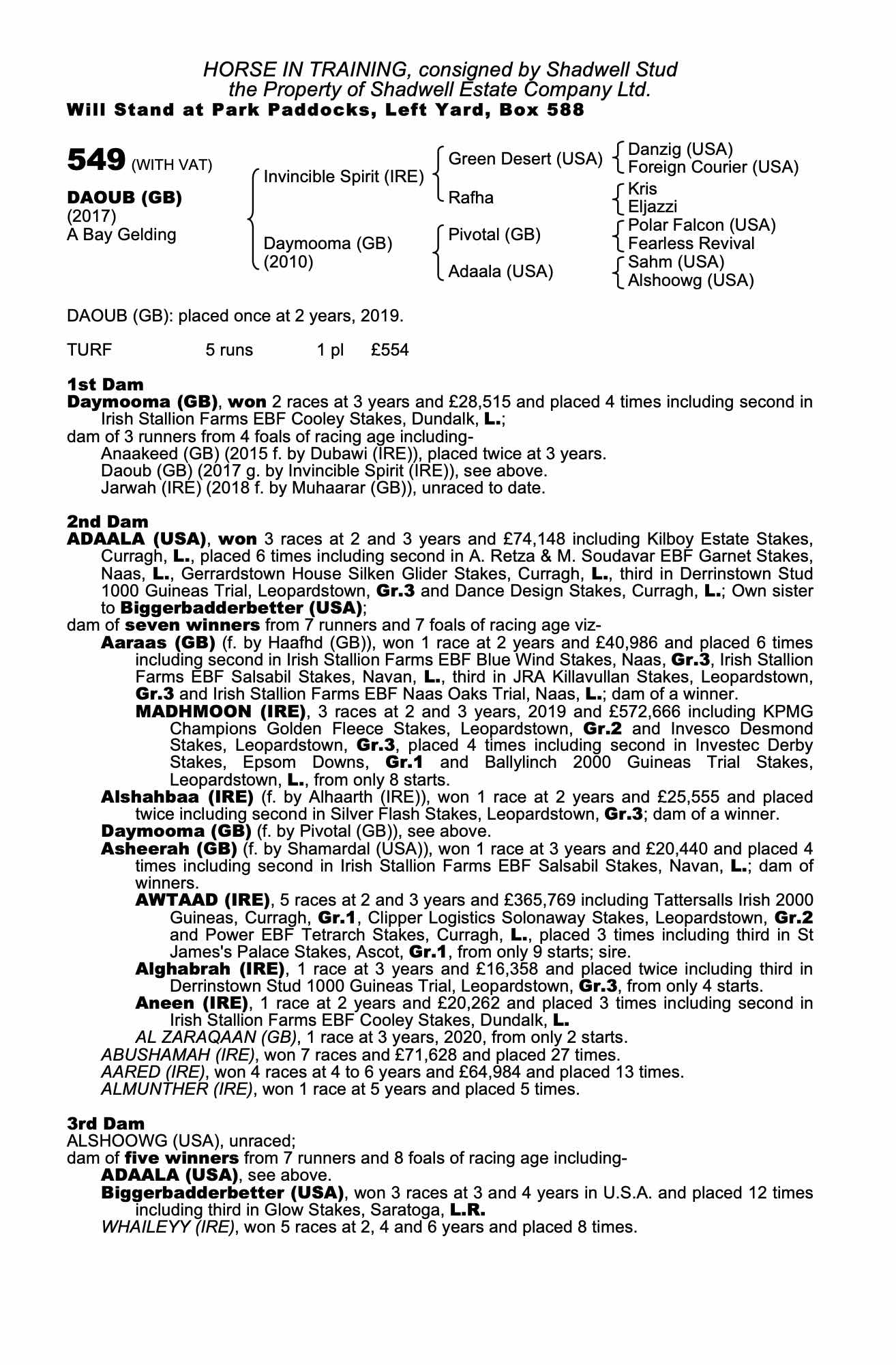 November Flat Sale 2021 lot 1466 Anaakeed (GB) (M. by Dubawi (IRE)), Derrinstown Stud=>John Lee €10,000