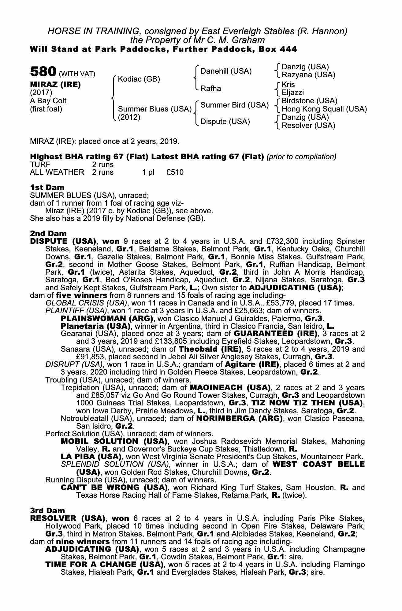 Online Sale - 23rd March 2022 lot 17Monte Lauro (IRE) (F. by National Defense (GB)), Carriganog Racing, Ireland (J. P. O'Brien)=>Michael Wigham1,000 gns