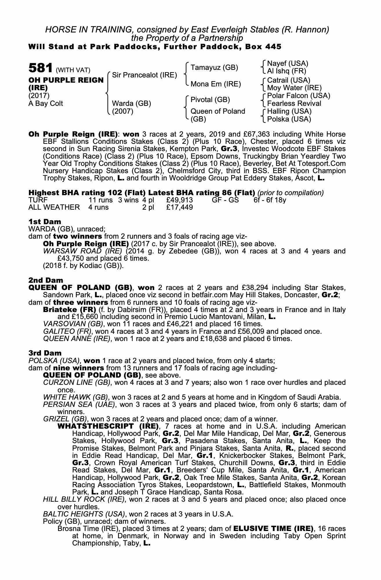 Consignor: East Everleigh Stables (R. Hannon)