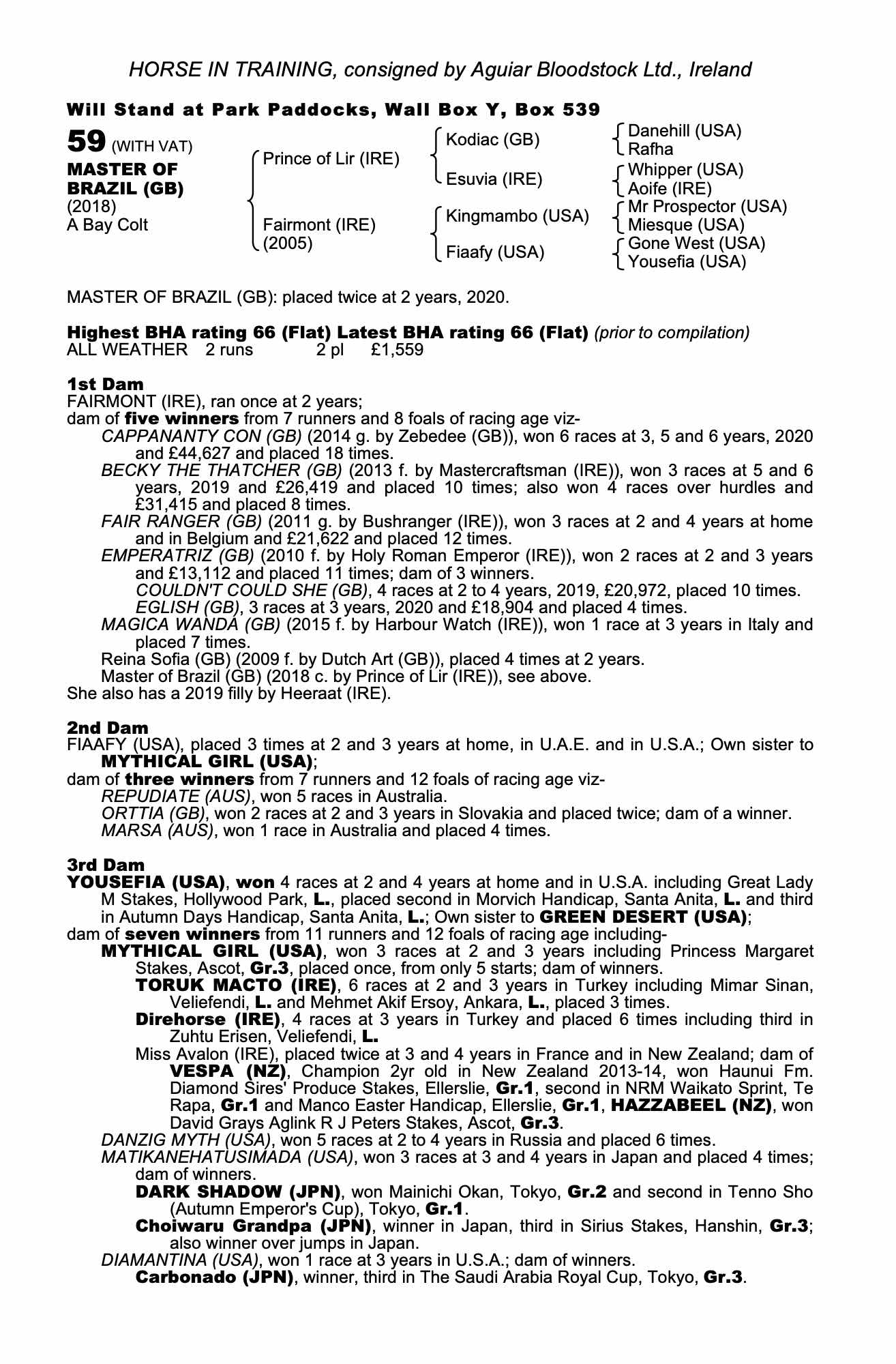 Consignor: Aguiar Bloodstock Ltd., Ireland