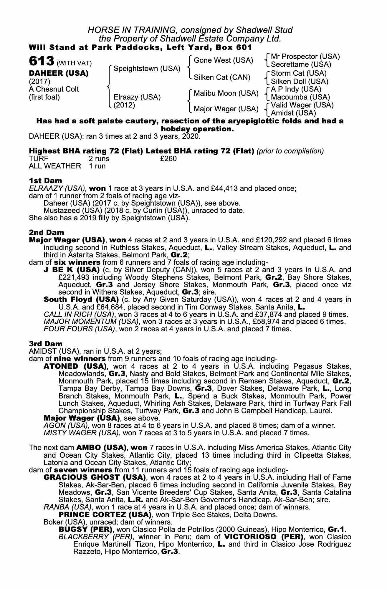 December Mare Sale 2021 lot 2378 Safayn (USA) (F.), Shadwell Estate Company Ltd.=>Alessandra Giudici 1,000 gns