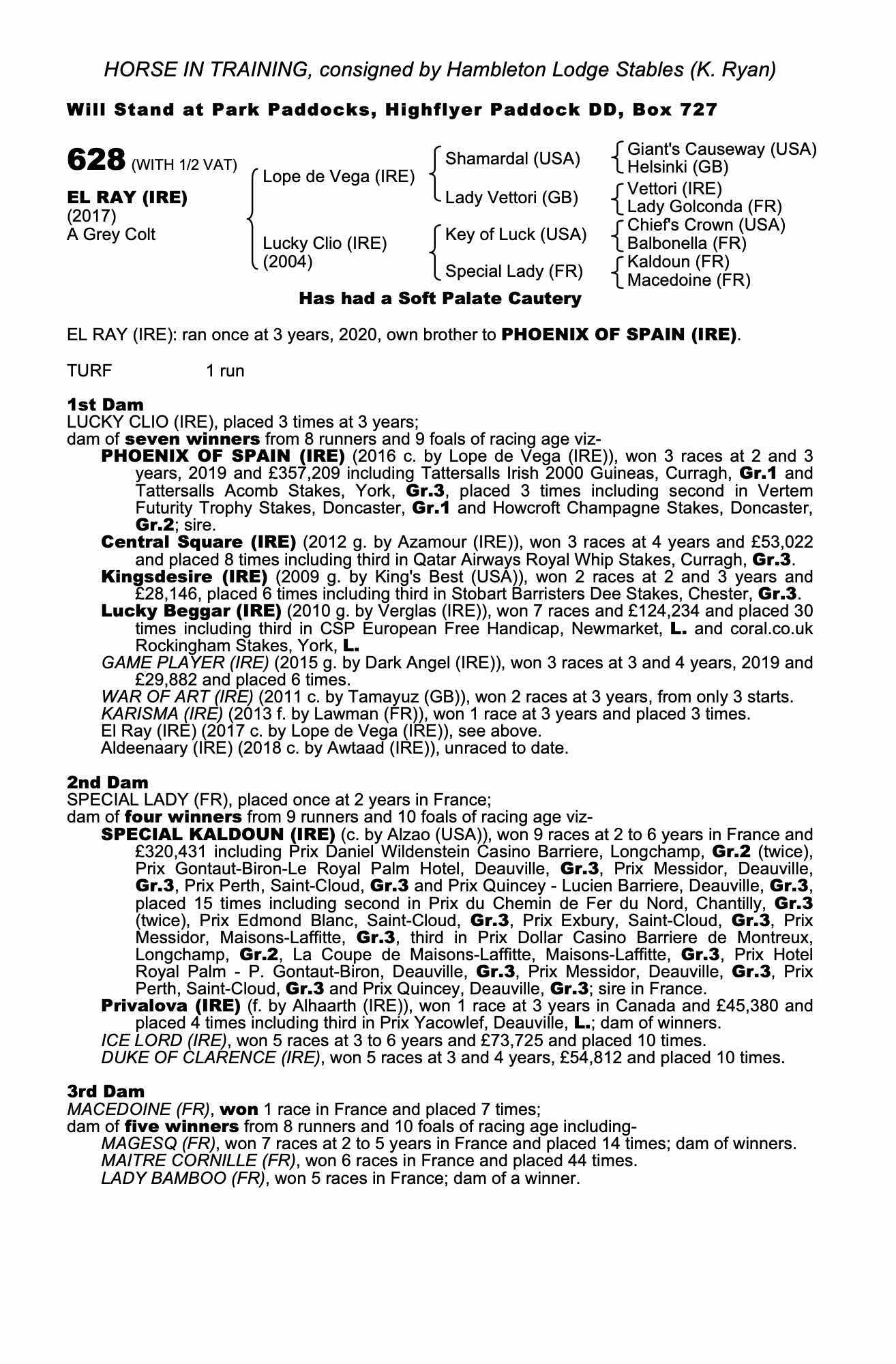Online Sale - 12th December 2024 lot 121 1/50th Share in Phoenix of Spain (IRE) (H.), a Gentleman=>Vendor 86,000 gns