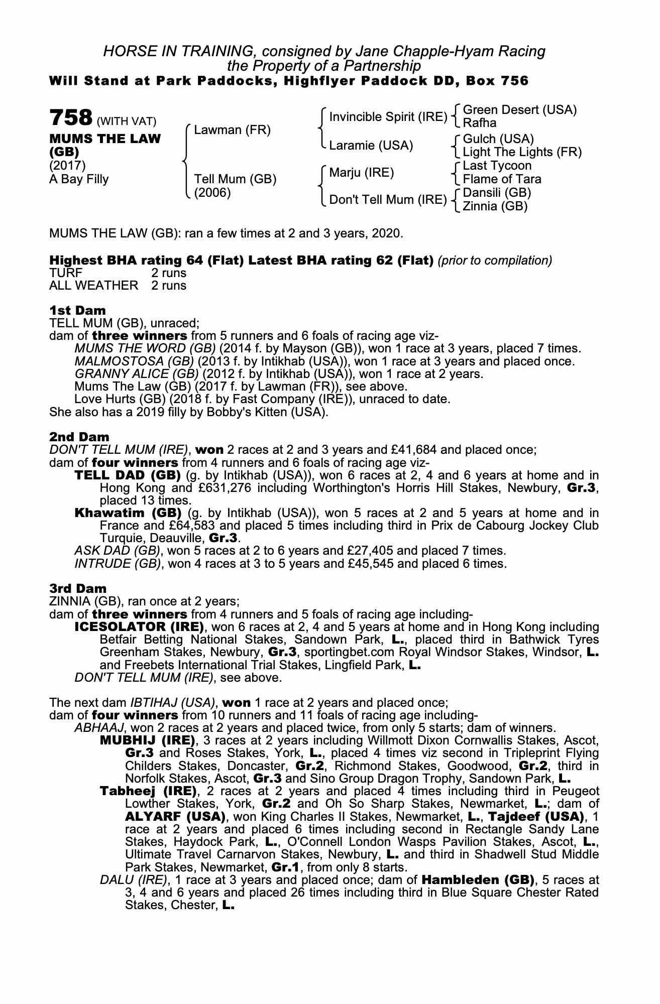 Autumn Horses in Training Sale lot 482 Mums The Word (GB) (F. by Mayson (GB)), East Everleigh Stables (R. Hannon)=>Bradley/Kelly Bloodstock 26,000 gns