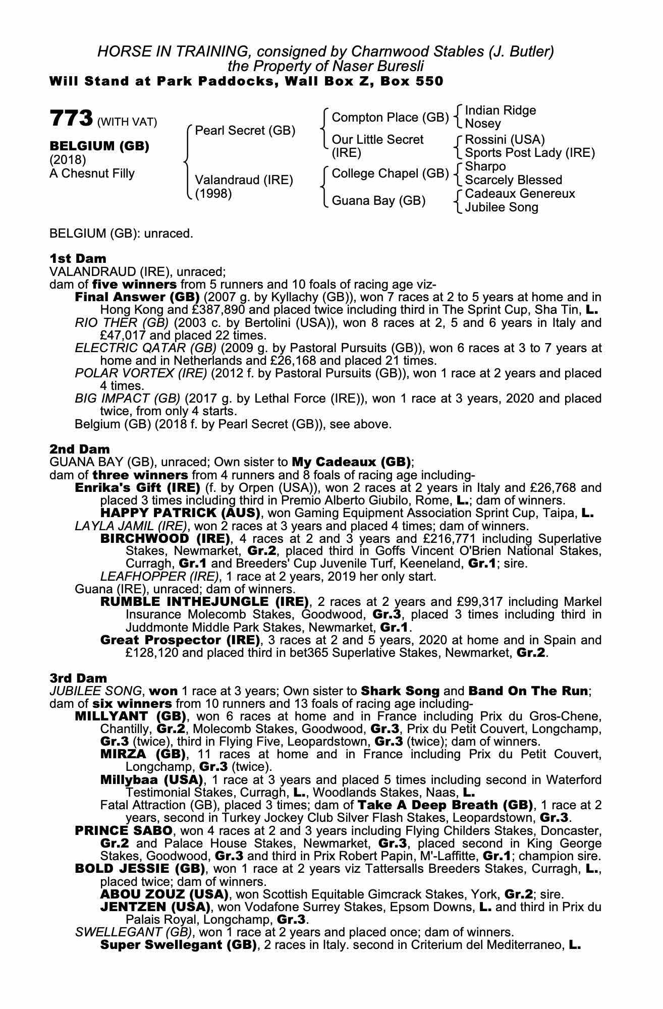 Consignor: Charnwood Stables (J. Butler)