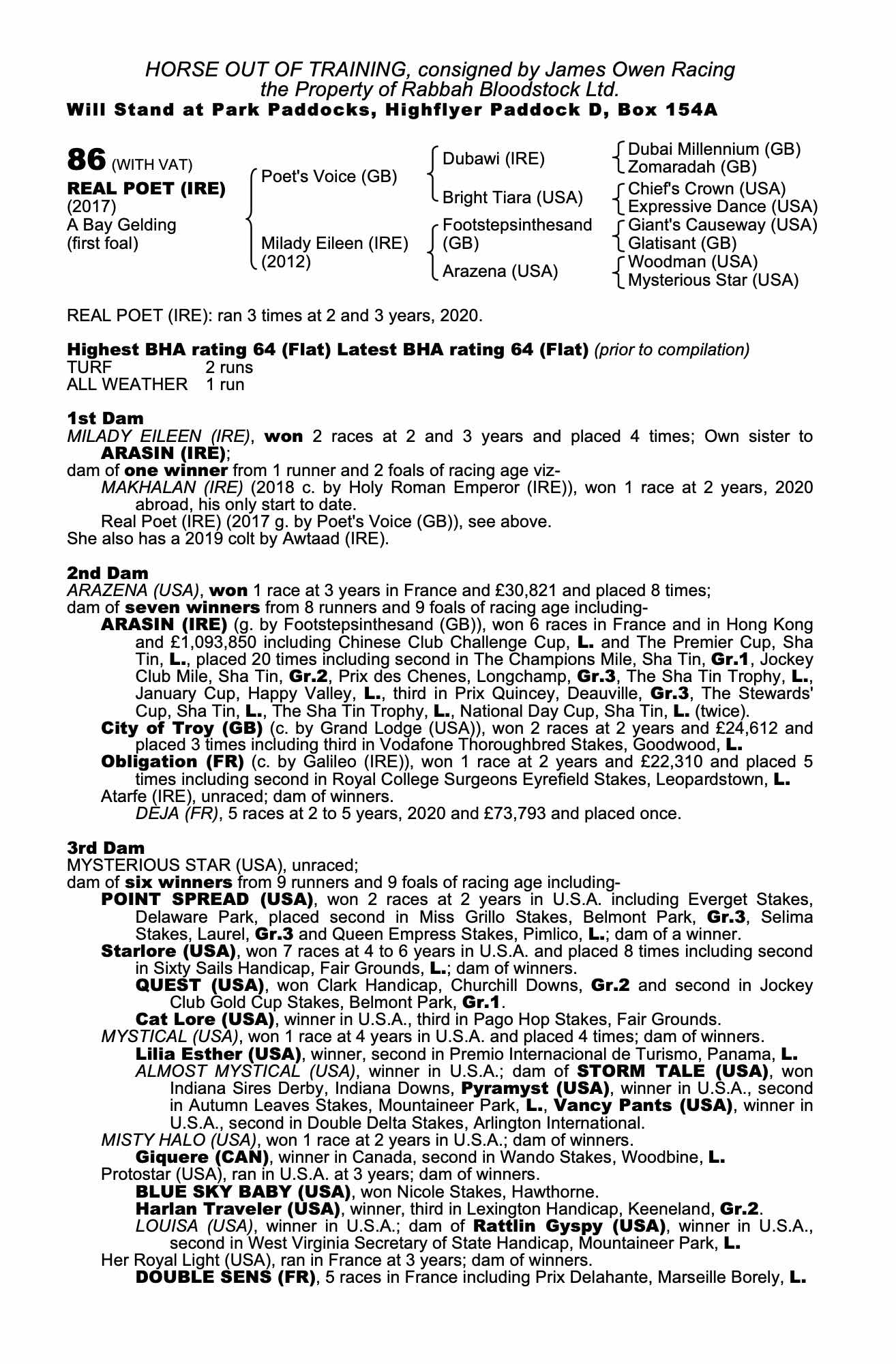 Location: James Owen Racing, Green Ridge Stables, Hamilton Road, Newmarket