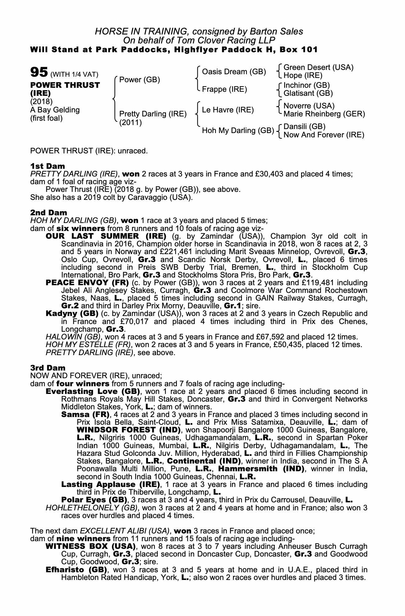 February Sale 2020 lot 65, Tom Clover Racing LLP=>Vendor 3,500 gns