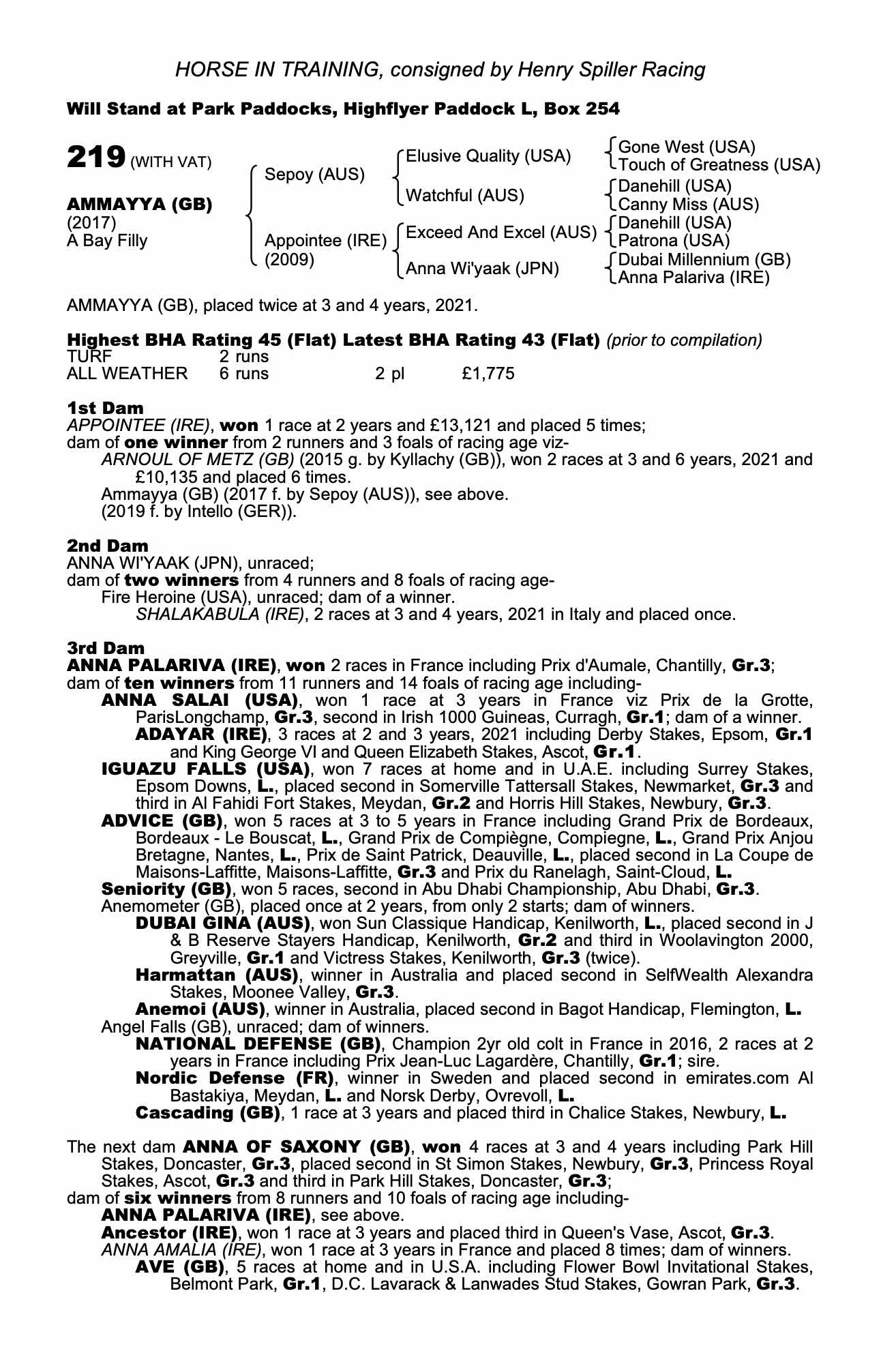Consignor: Henry Spiller Racing