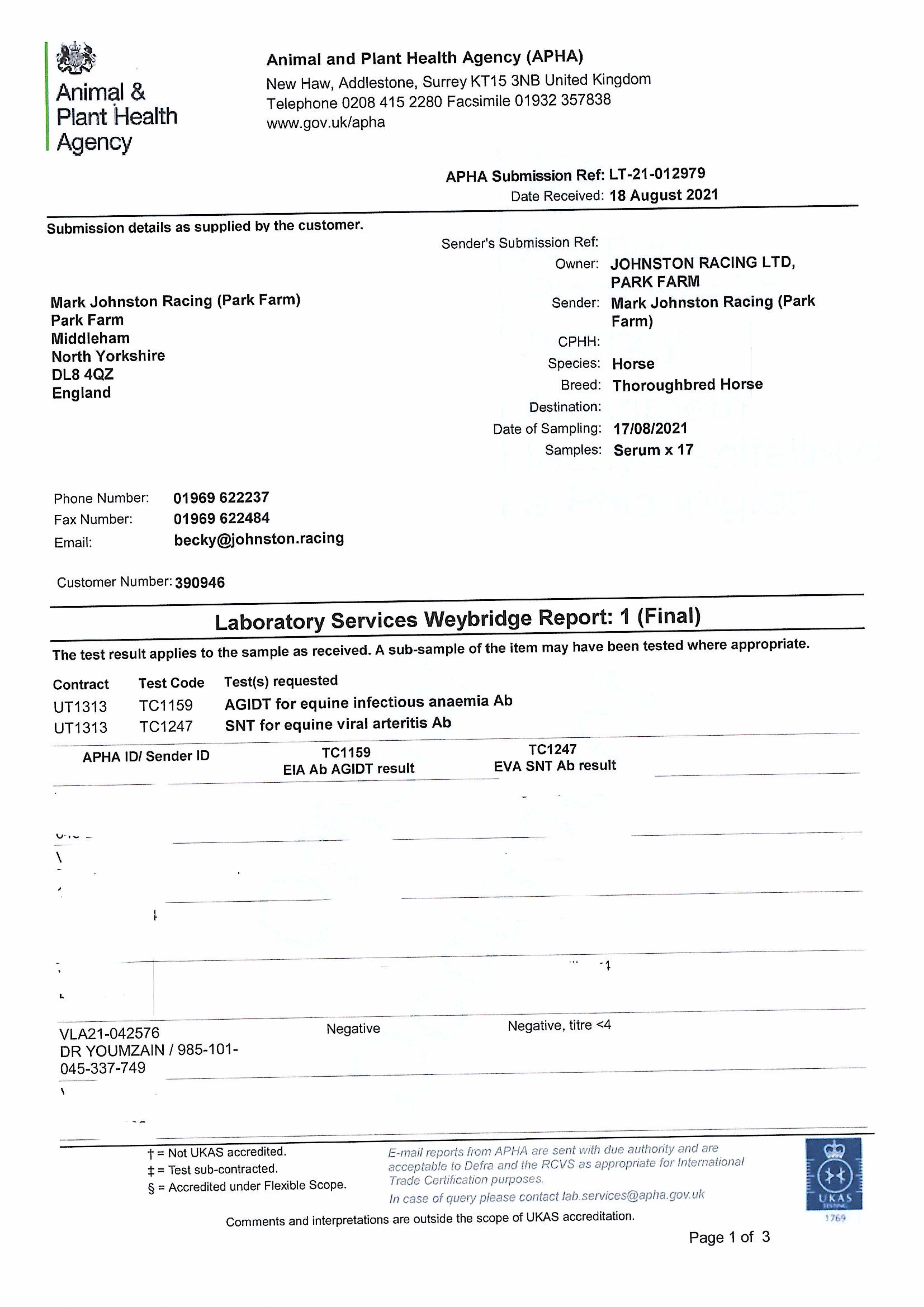Monday 30 August:  Has now ran 3 times at 2 years, 2021.