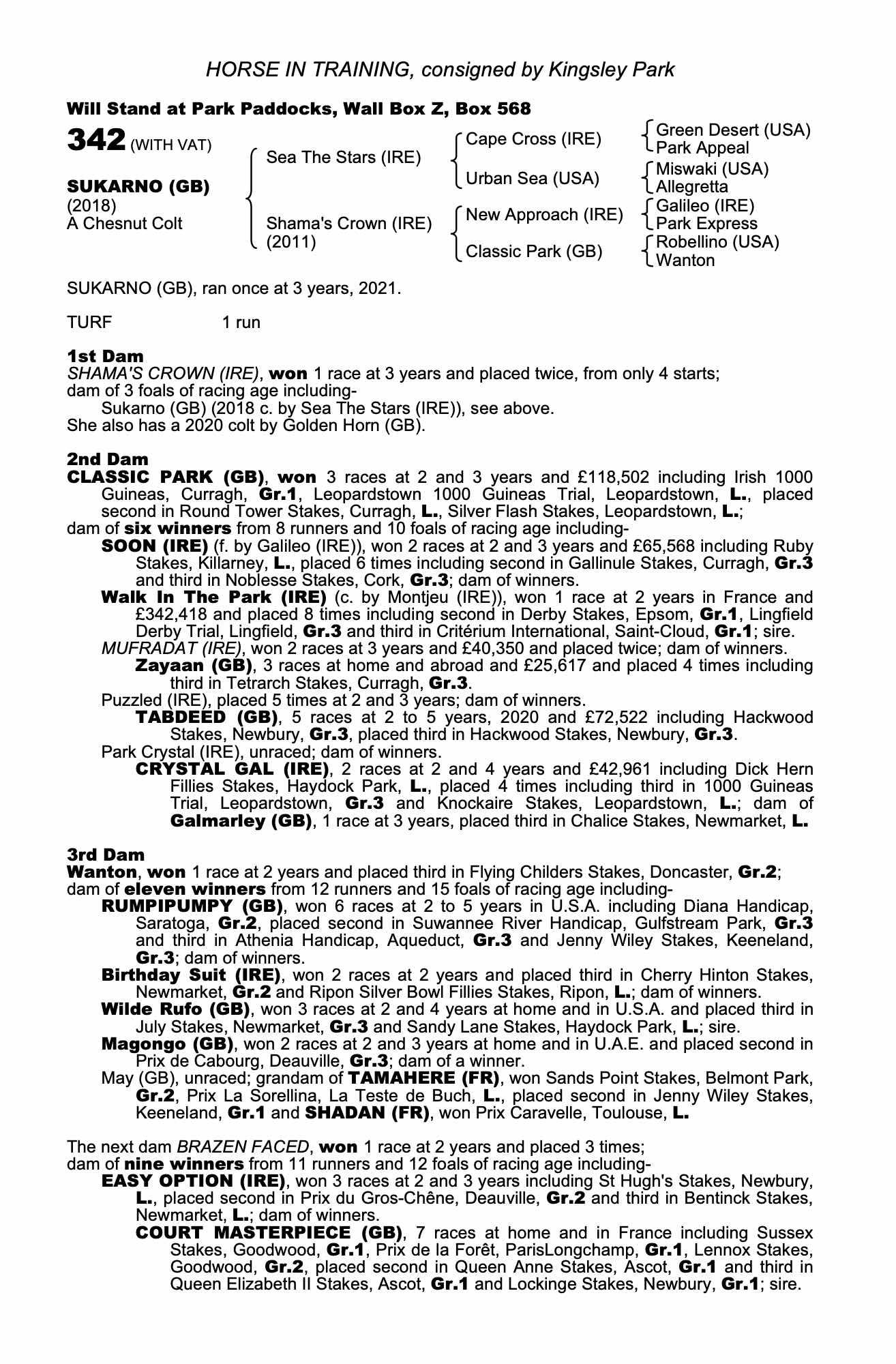 Online Sale - 15th January 2025 lot 92 Shama's First (GB) (M. by Exceed And Excel (AUS)), Ballyshannon Stud, Ireland (Agent)=>Lot Not Sold 900 gns