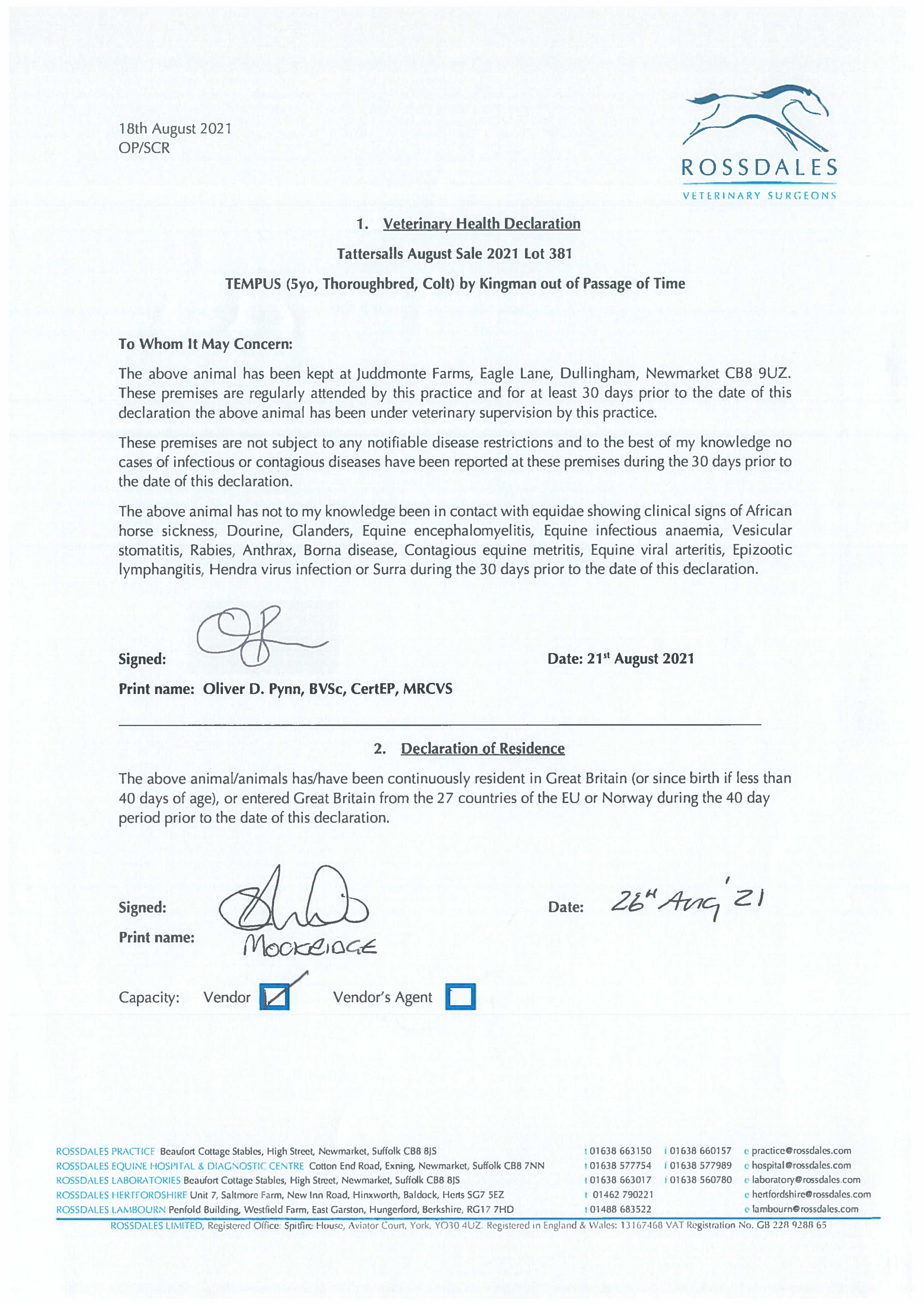 Online Sale - 14th December 2023 lot 106 A Breeding Right to Time Test (GB) (H. by Dubawi (IRE)), a Gentleman=>Vendor 11,000 gns