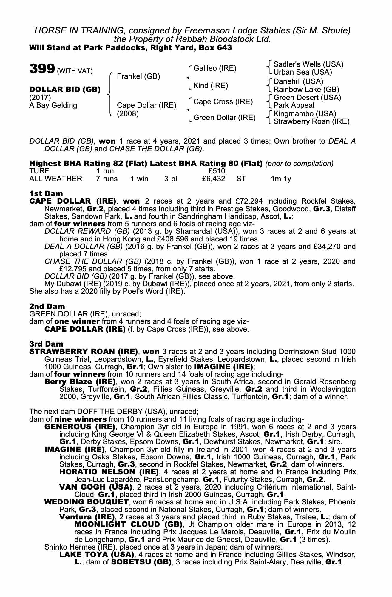 Consignor: Freemason Lodge Stables (Sir M. Stoute)