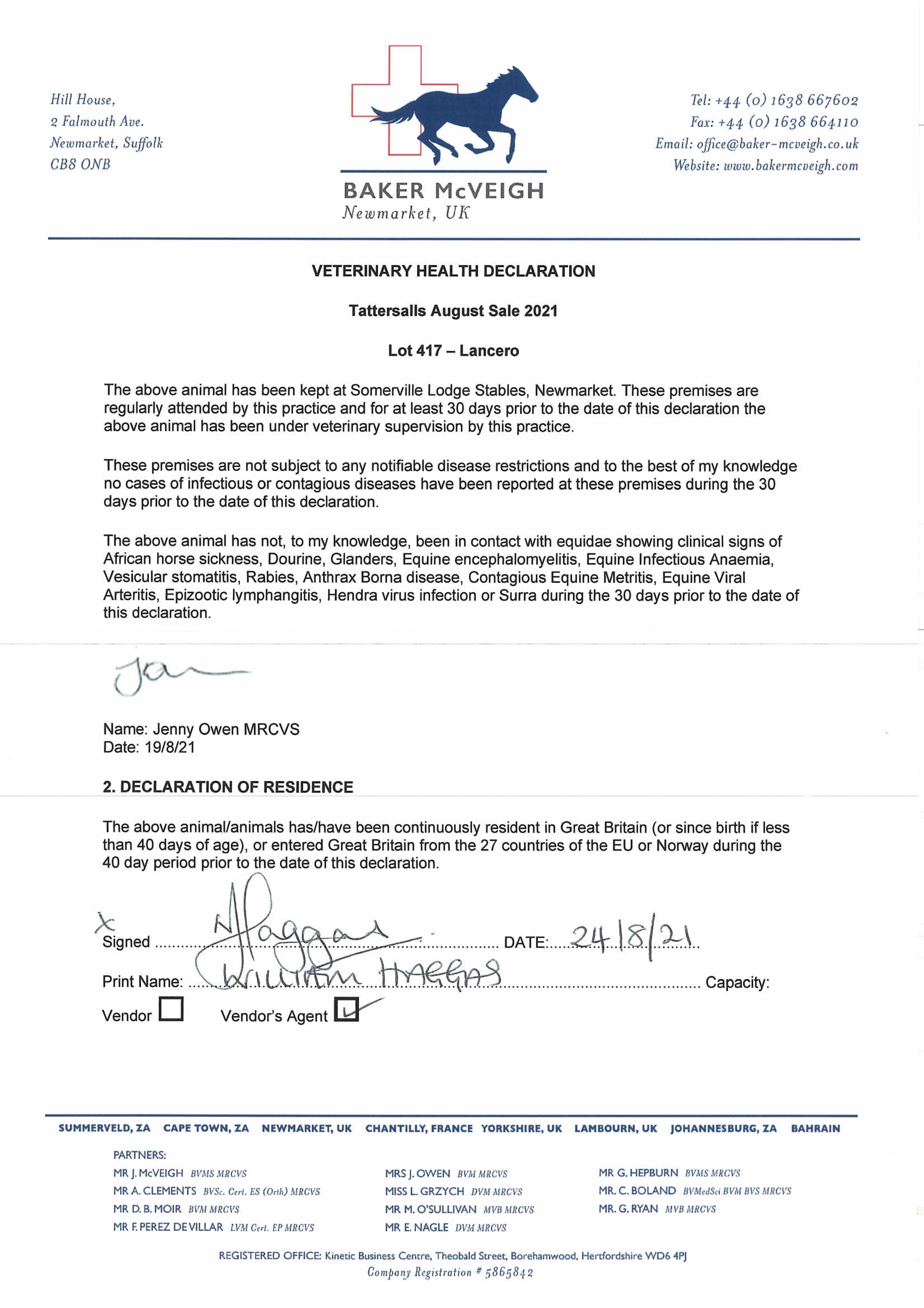 Consignor: Somerville Lodge Ltd. (W. Haggas), Agent