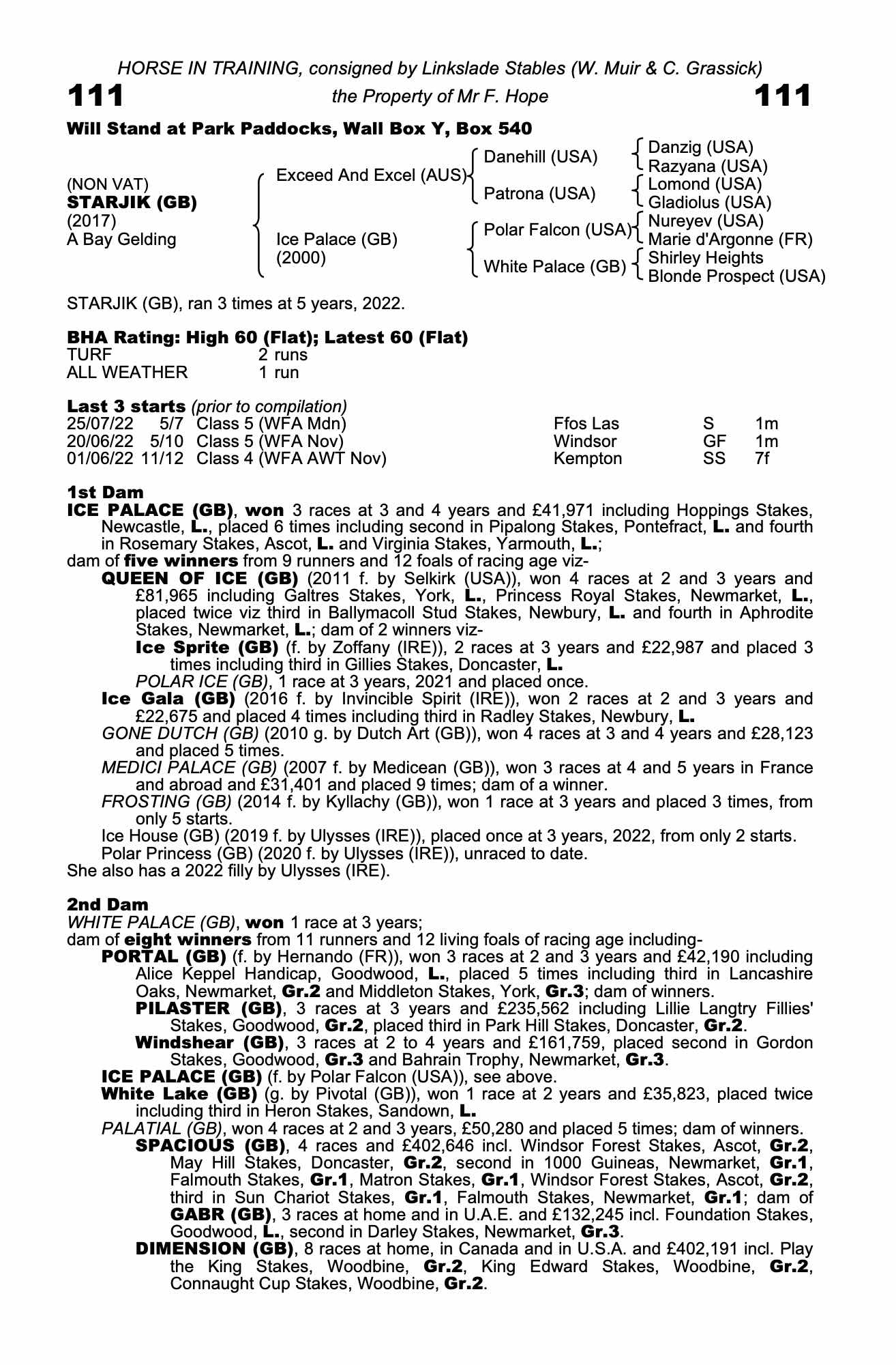 Consignor: Linkslade Stables (W. Muir & C. Grassick)