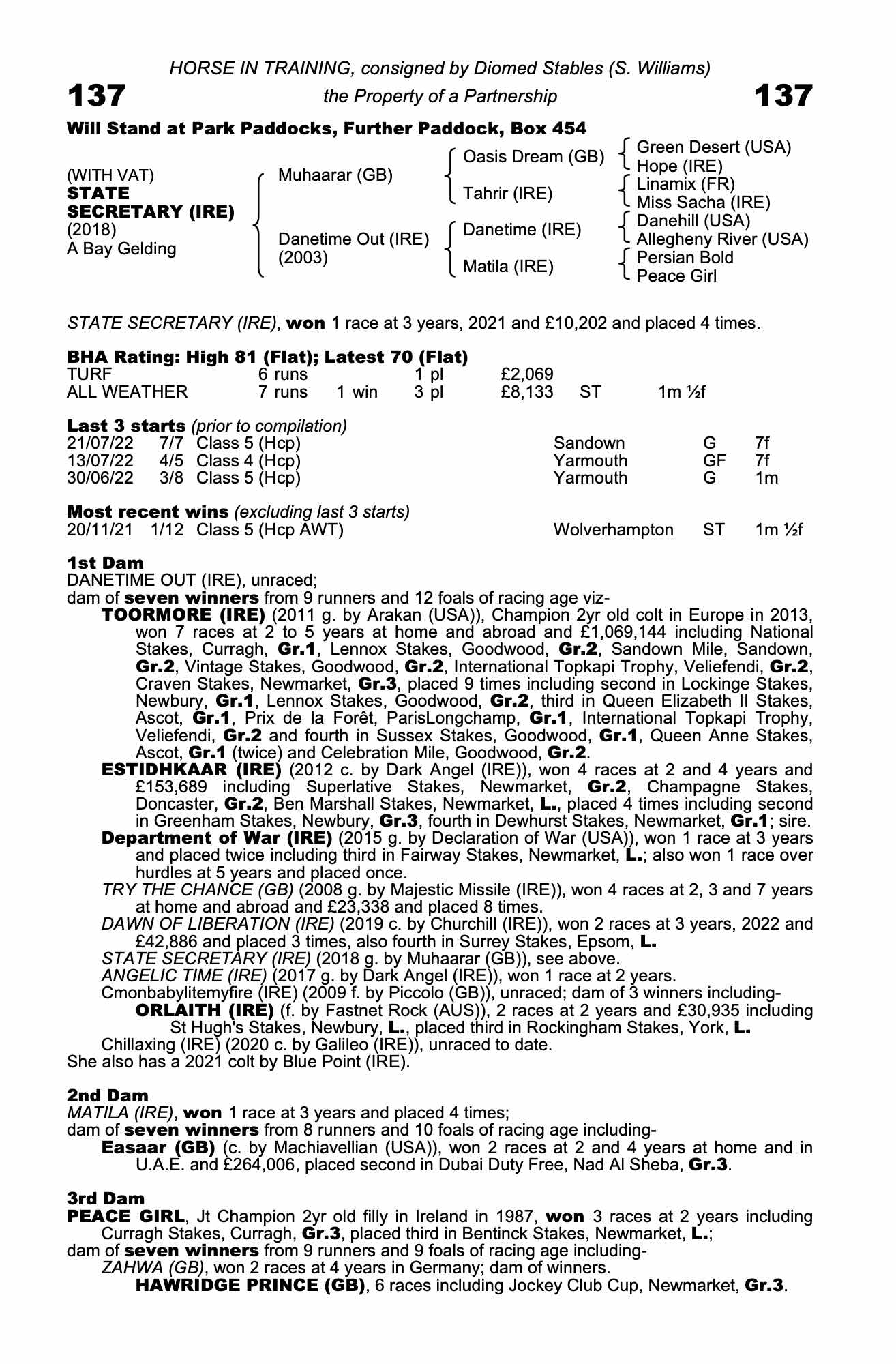 Friday 26 August:  Won 2 races at 3 and 4 years, 2022 and £14,738.