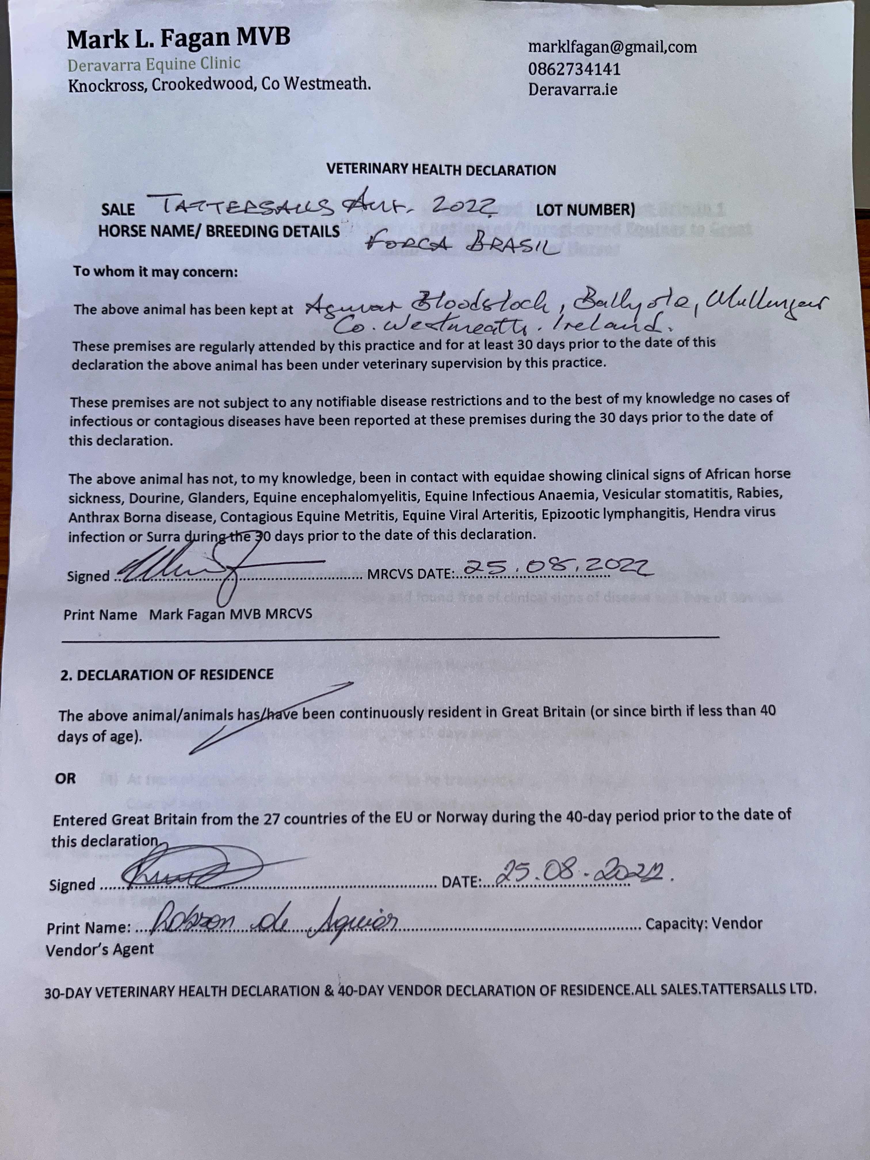 Consignor: Aguiar Bloodstock Ltd., Ireland