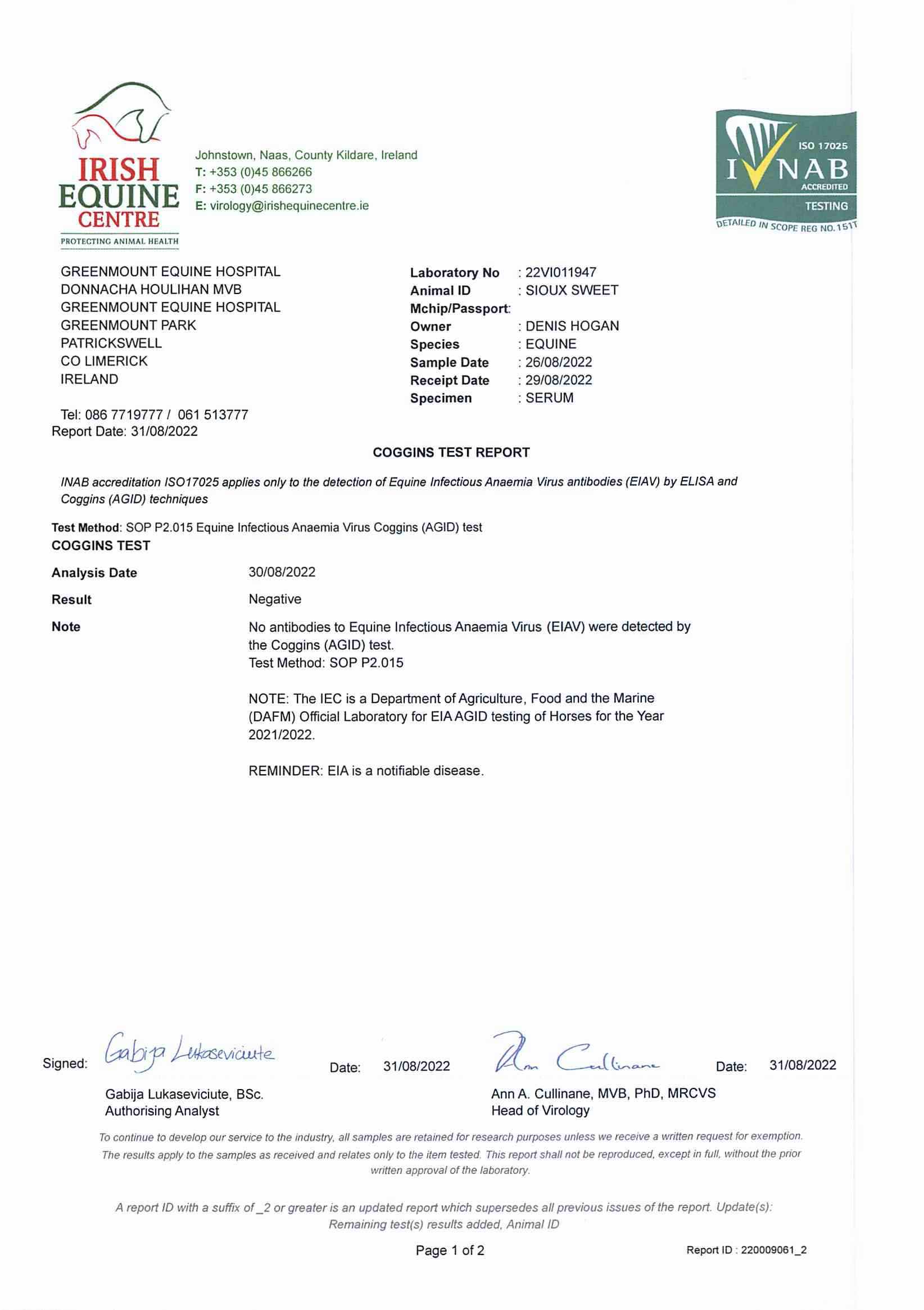 Consignor: Boherna Stables, Ireland (D. Hogan)