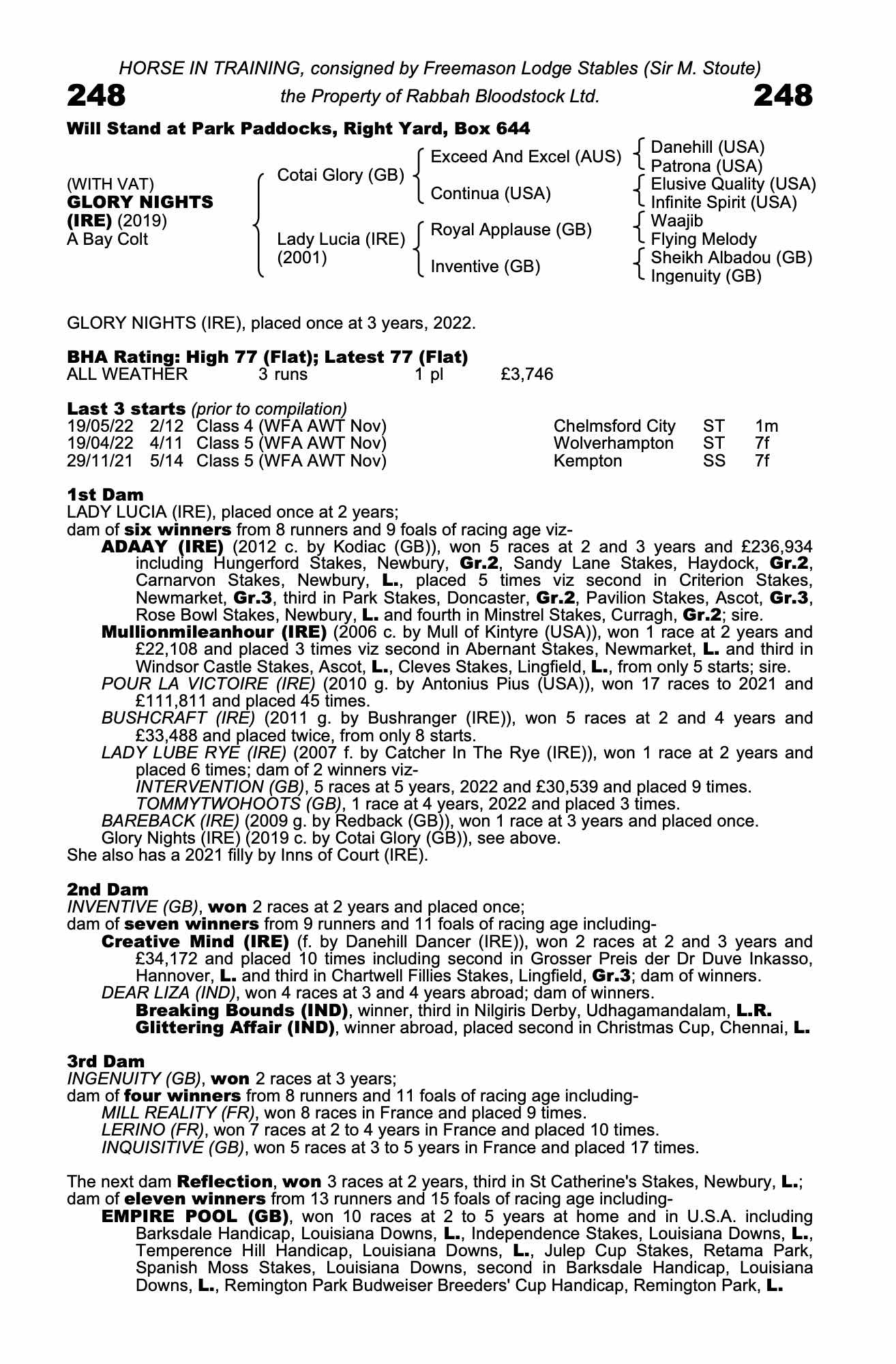 Consignor: Freemason Lodge Stables (Sir M. Stoute)