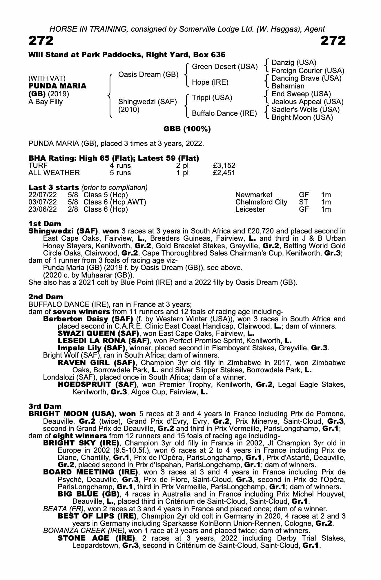 Consignor: Somerville Lodge Ltd. (W. Haggas), Agent
